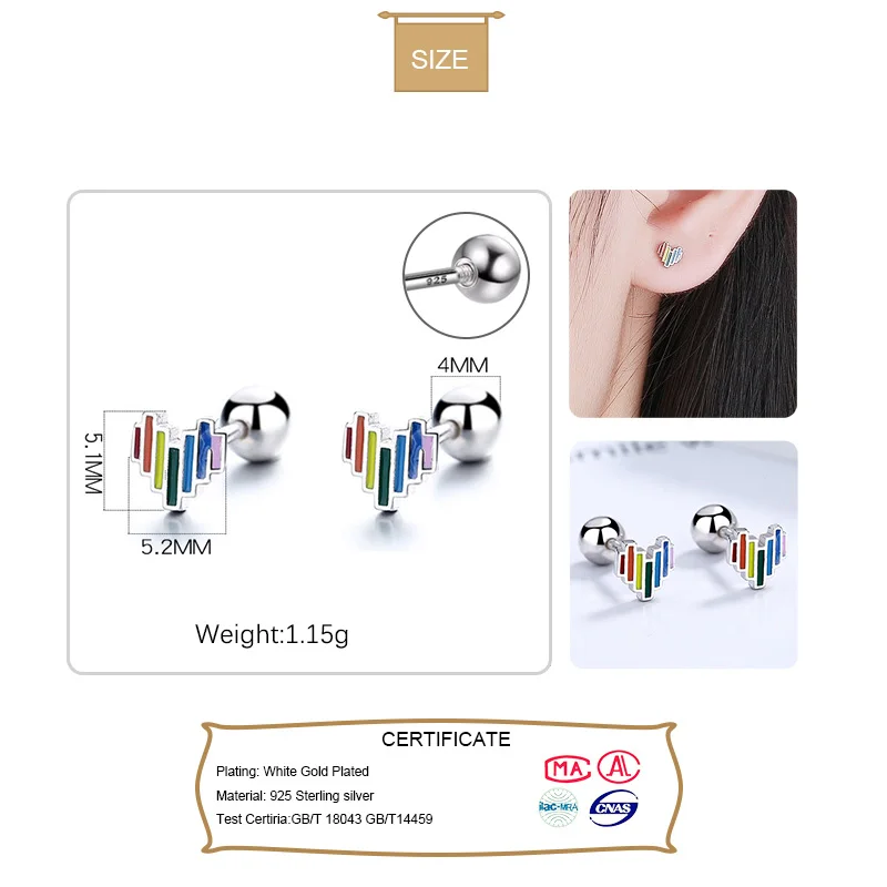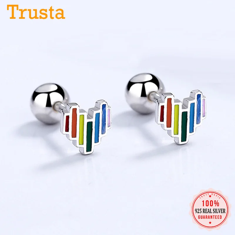 Trustdavis настоящие 925 Стерлинговое Серебро милые романтические цветные сердца бусины винтовые серьги-гвоздики для женщин Свадебные ювелирные изделия DA2257