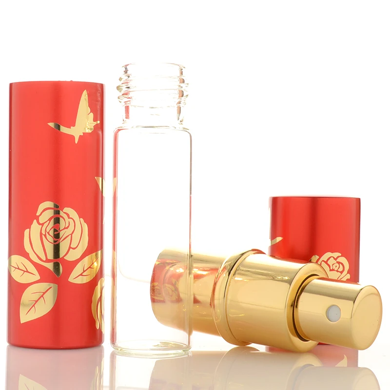 Роскошный стеклянный флакон для духов 10 мл, пустая алюминиевая многоразовая бутылка, портативный металлический распылитель, 6 цветов
