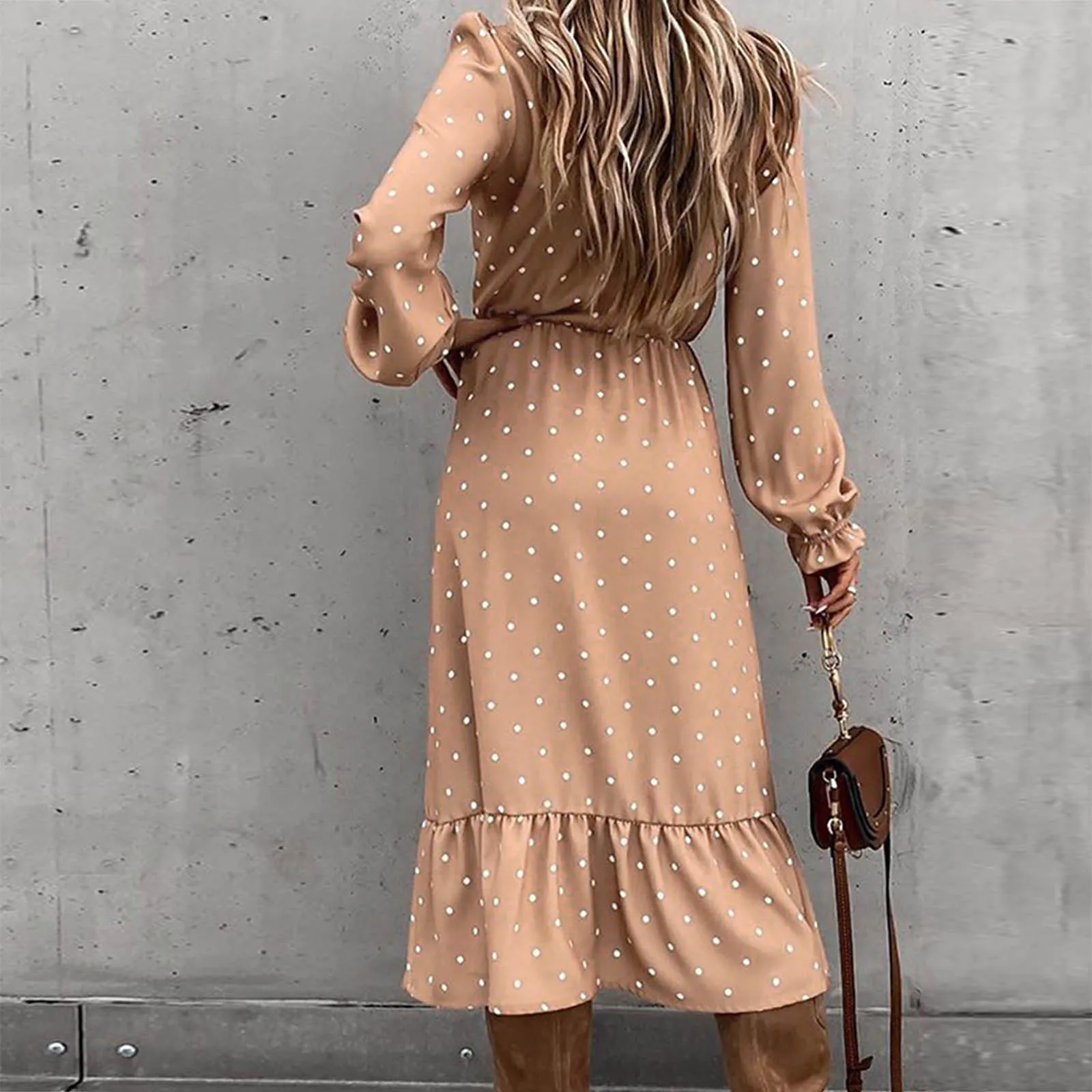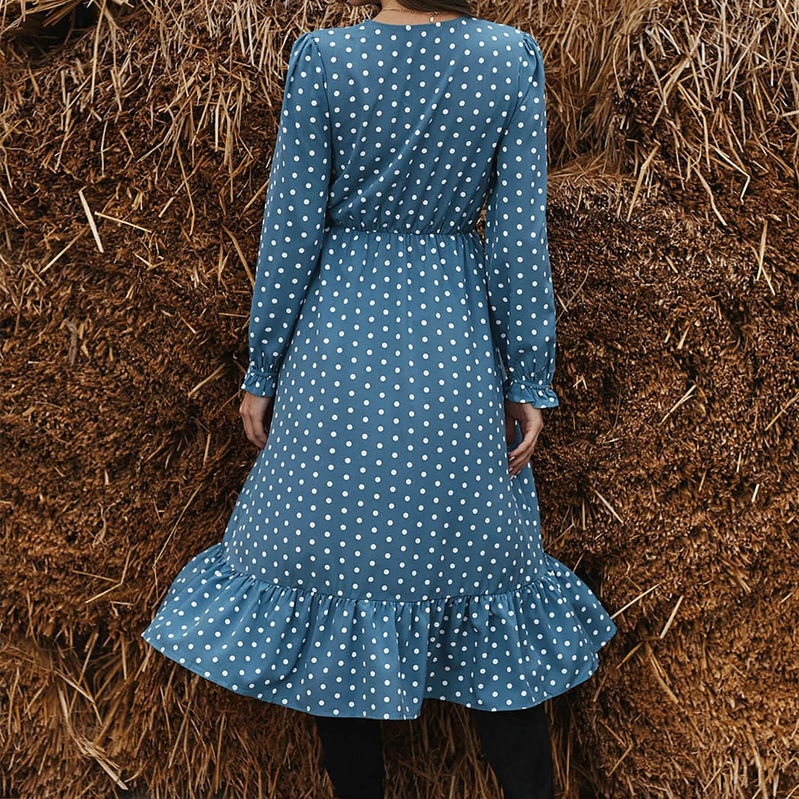 Модное женское платье в горошек, однотонное свободное платье с V-образным вырезом и длинным рукавом, женское офисное платье, элегантные платья для женщин