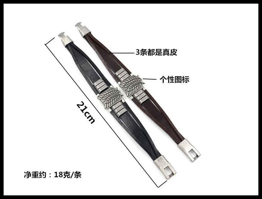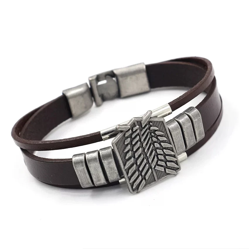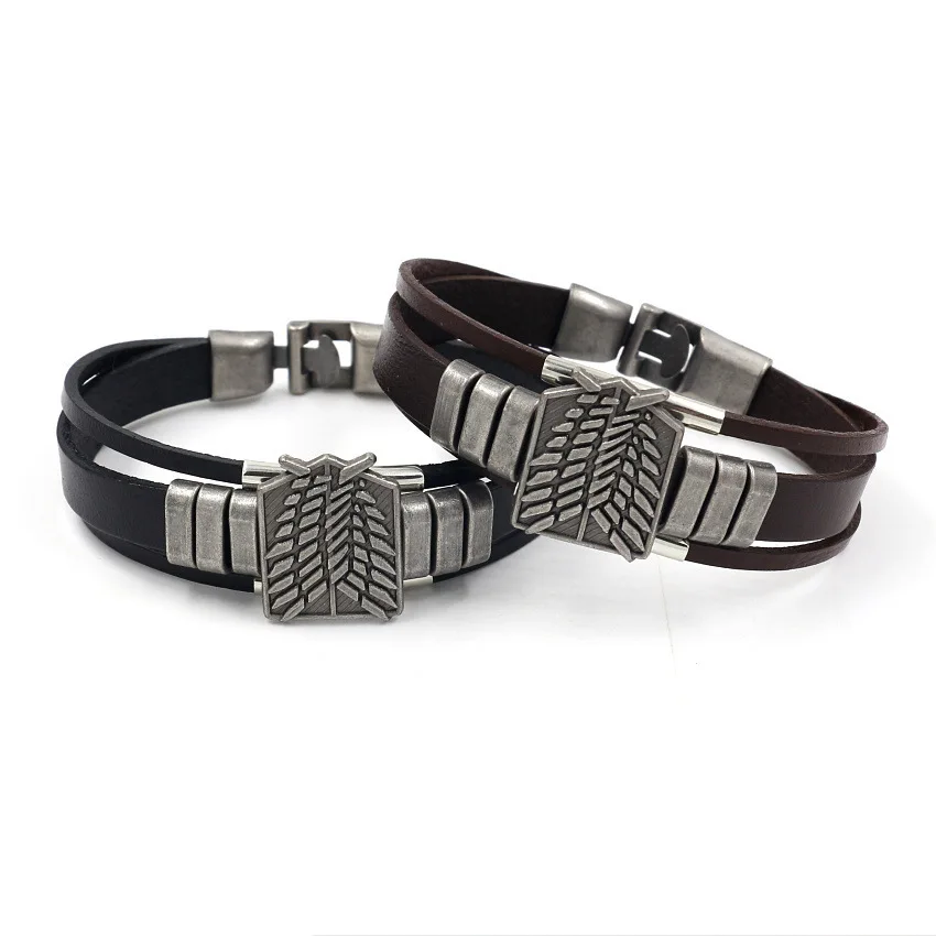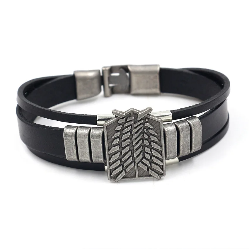 Кожаный браслет в стиле аниме Атака Титанов для мужчин и женщин, разведчик, легион цзюю, значок Tsubasa, браслет панка ювелирные изделия
