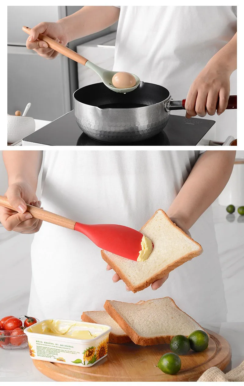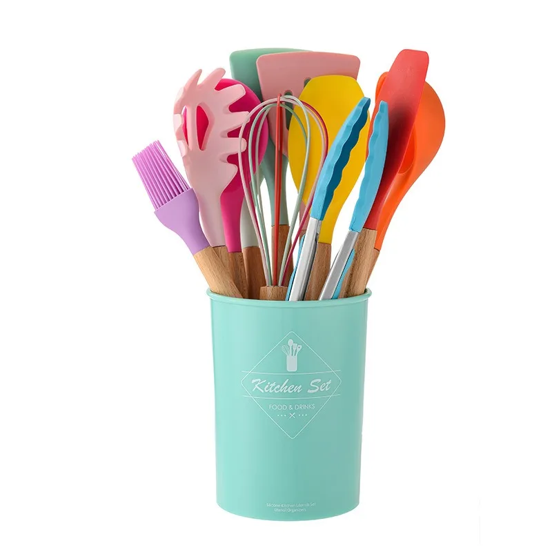 Набор силиконовых кухонных принадлежностей, 12 шт., лопатка с антипригарным покрытием, лопата с деревянной ручкой инструменты для приготовления пищи, с ящиком для хранения, кухонные принадлежности