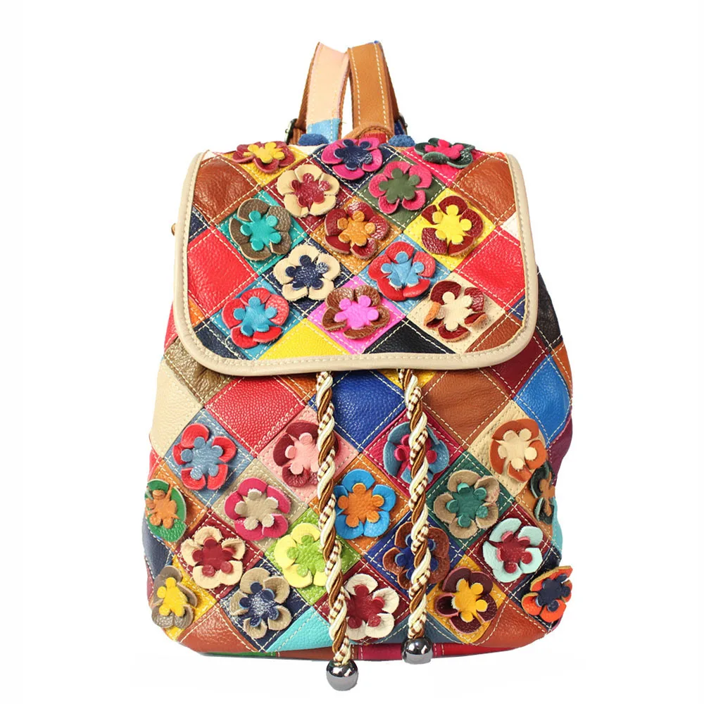 Национальная натуральная кожа 3D аппликация цветок роскошная дизайнерская сумка рюкзак женская Bolsa Feminina Mochilas женская сумка