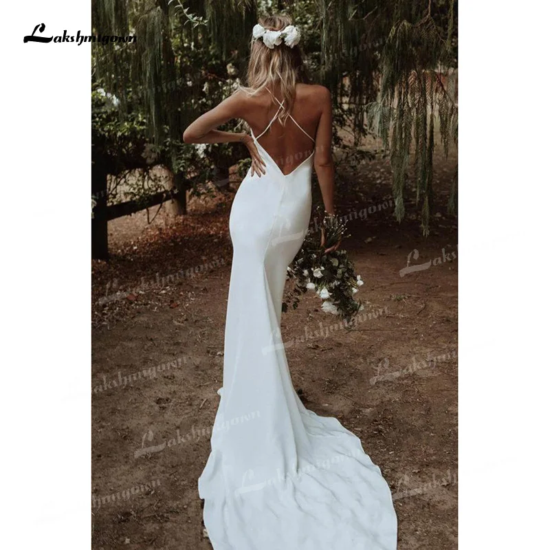Женское атласное платье с юбкой-годе, белое платье с глубоким V-образным вырезом, на тонких бретельках, с открытыми плечами и открытой спиной, со шлейфом