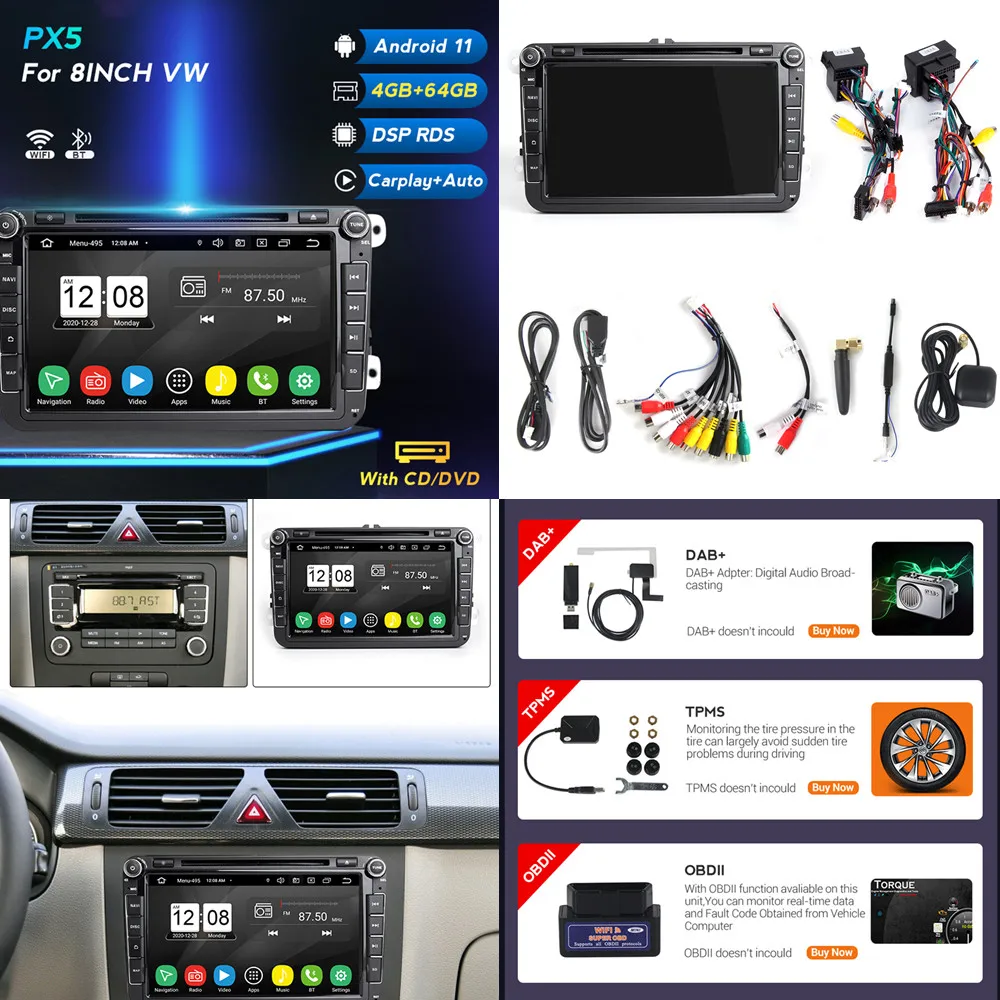 Автомобильное радио GPS DAB DSP для VWVolkswagenGolfPoloTiguanPassatb7b6SEATleonSkodaOctavia Поддержка нескольких языков Carplay