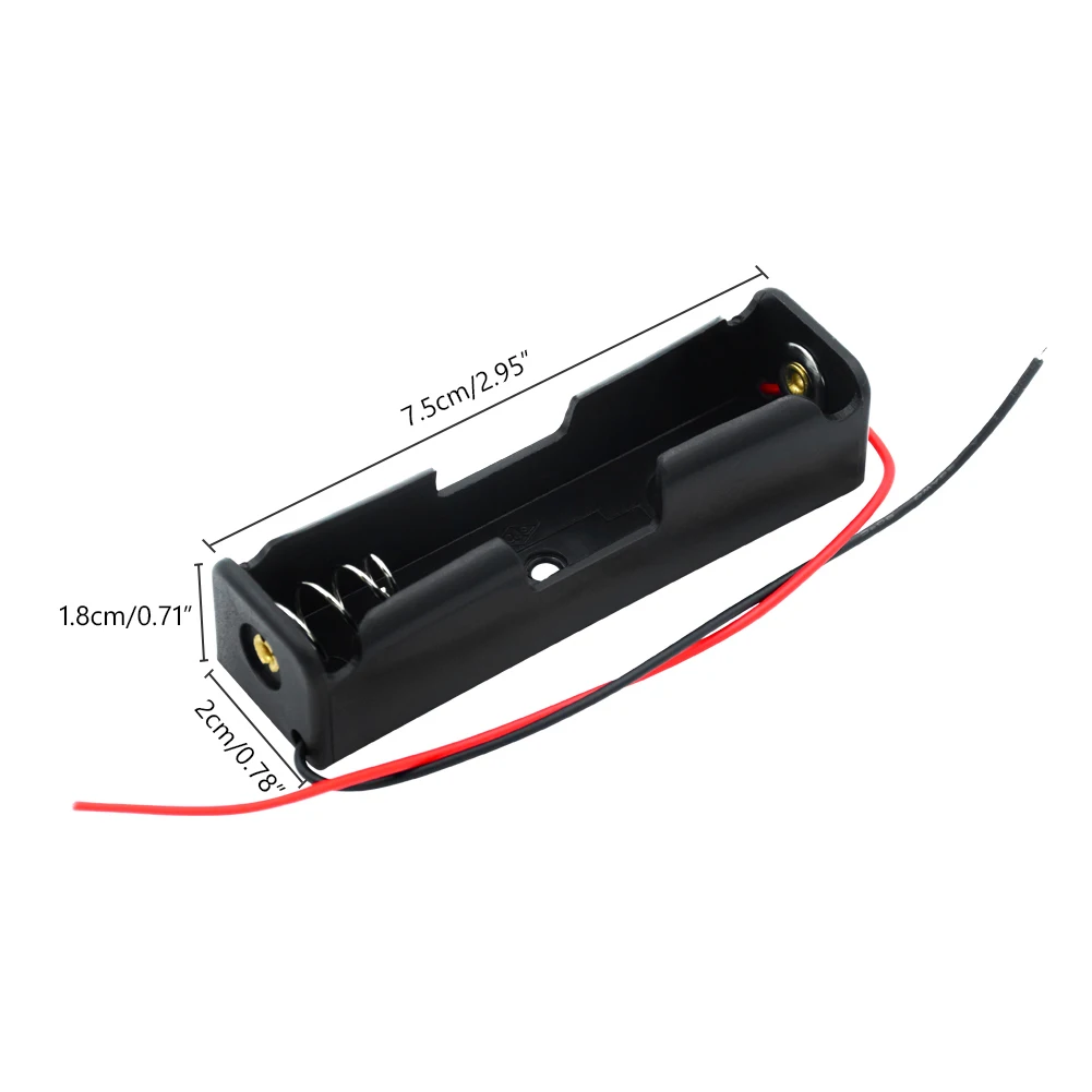Он вмещает стандартные аккумуляторы размером 18650, как для одноразовых, так и для перезаряжаемых батарей, двухпроводная конструкция черного и красного цвета отлично подходит для легкой пайки и подключения.