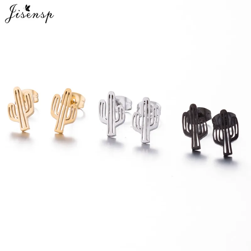 Jisensp маленькие геометрические серьги-гвоздики с кактусом для жен...