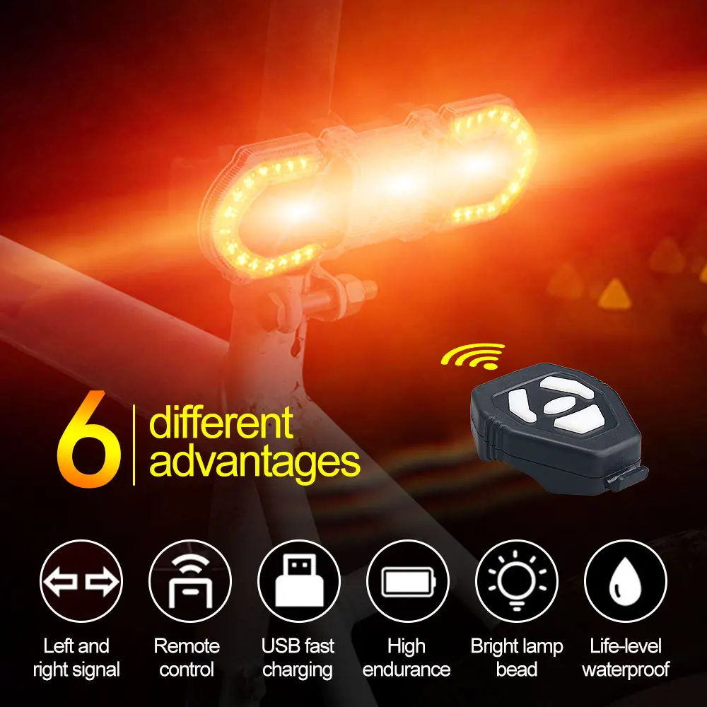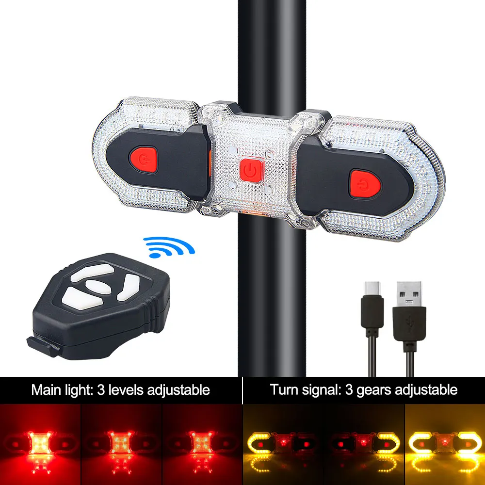 Задний фонарь для велосипеда, перезаряжаемый по USB, беспроводной светодиодный поворотный фонарь с дистанционным управлением