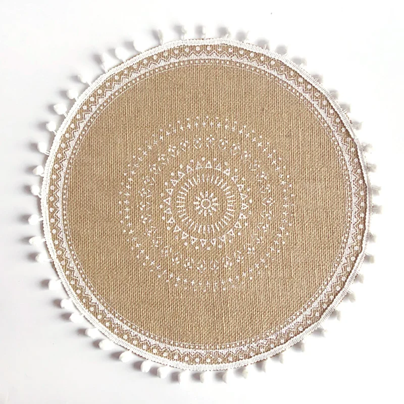 Богемная хлопковая тканая льняная салфетка, коврик для стола 38 см, круглый цветочный изоляционный обеденный нескользящий с кисточками, деликатное украшение для кухни