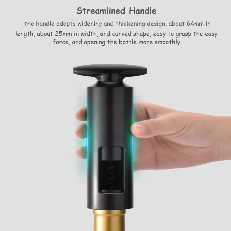 Двухслойный рукав подходит для большинства типов бутылок. Защитный рукав шириной около 35 мм и легко помещается в большинство типов бутылок. Внутри есть еще один пружинный рукав, который может зафиксировать пробку во время открытия бутылки и отключения процесса для повышения эффективности.