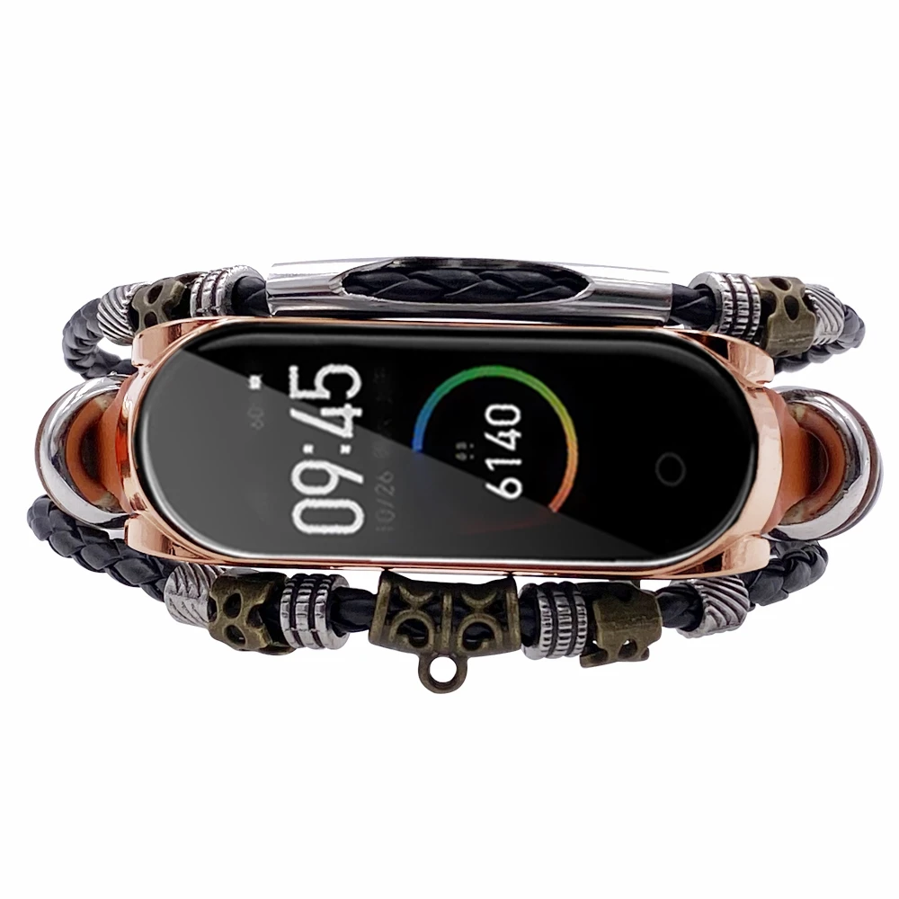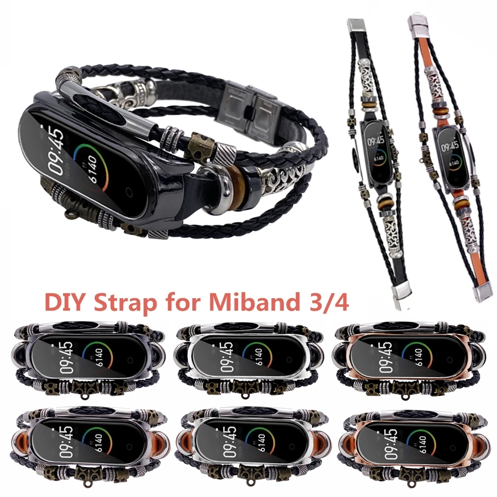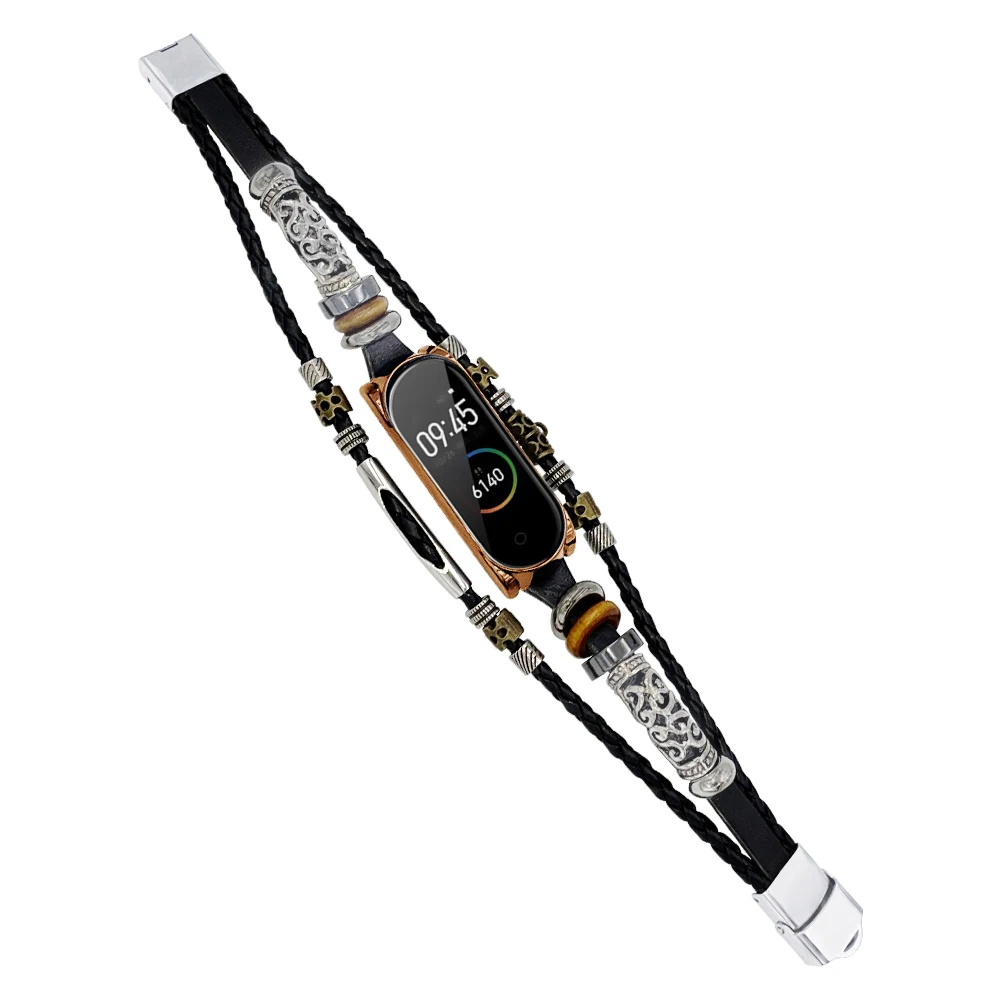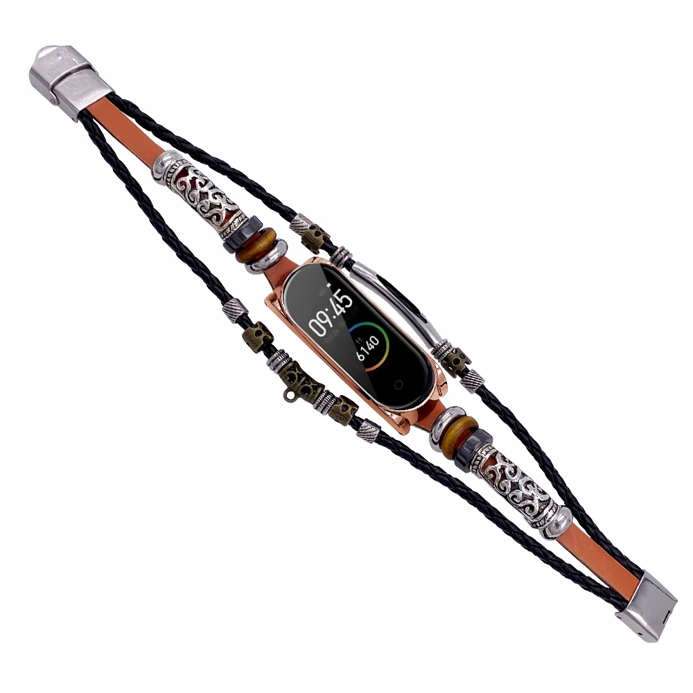 Ремешок Mi Band 6, 5, модный кожаный браслет с бисером для Xiaomi Mi Band 4, 3, винтажный Плетеный ремешок на запястье, сменный ремешок Mi5 Correa в стиле ретро