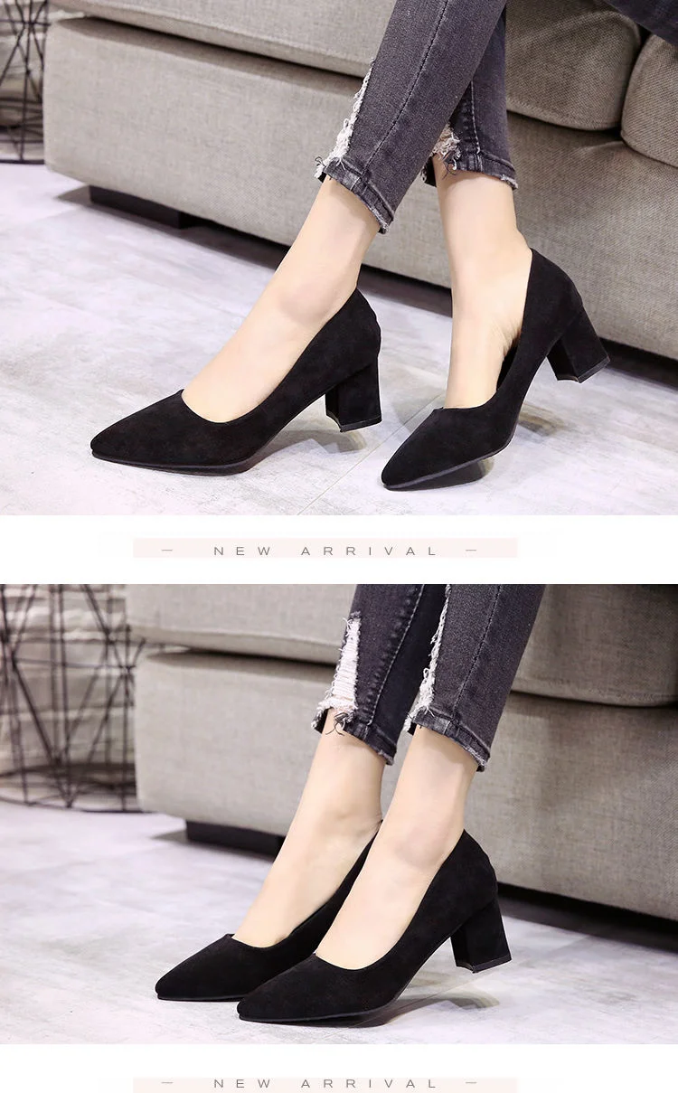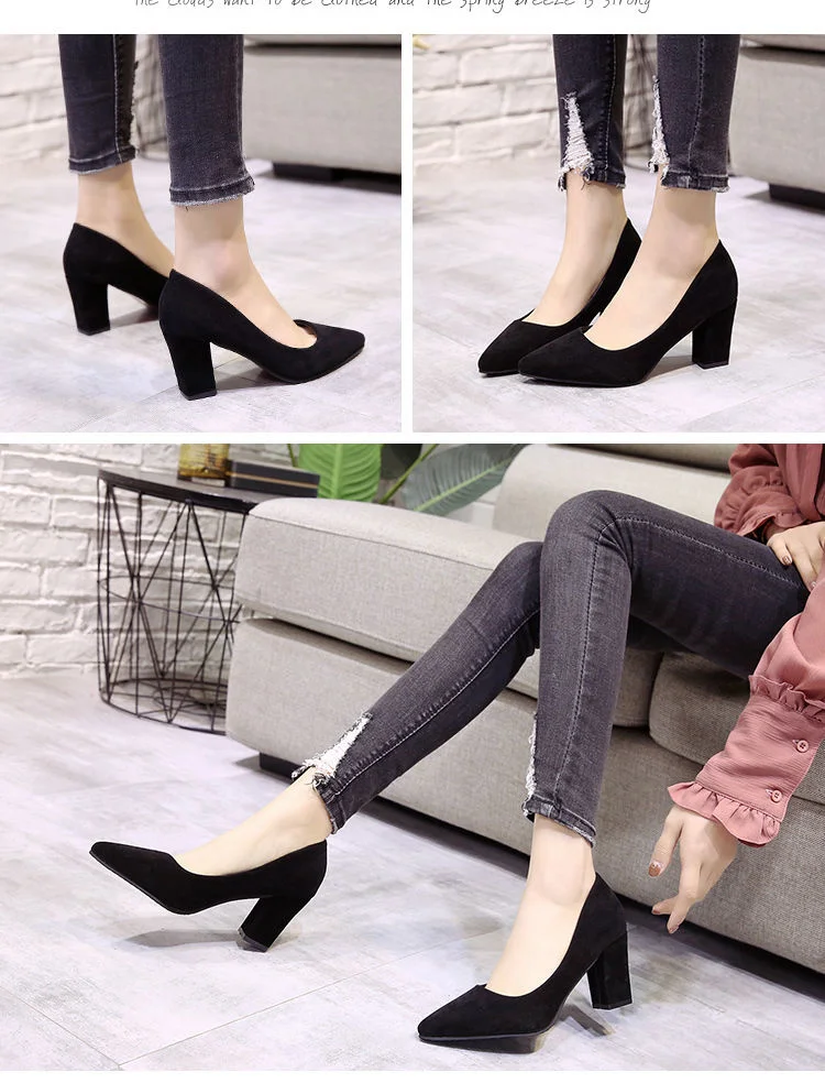 [Быстрый возврат денег] обувь на высоком каблуке Женская рабочая обувь на толстом каблуке для стюардессы черные тонкие туфли для профессиональной работы в гостинице Нескользящие туфли на низком каблуке средней высоты