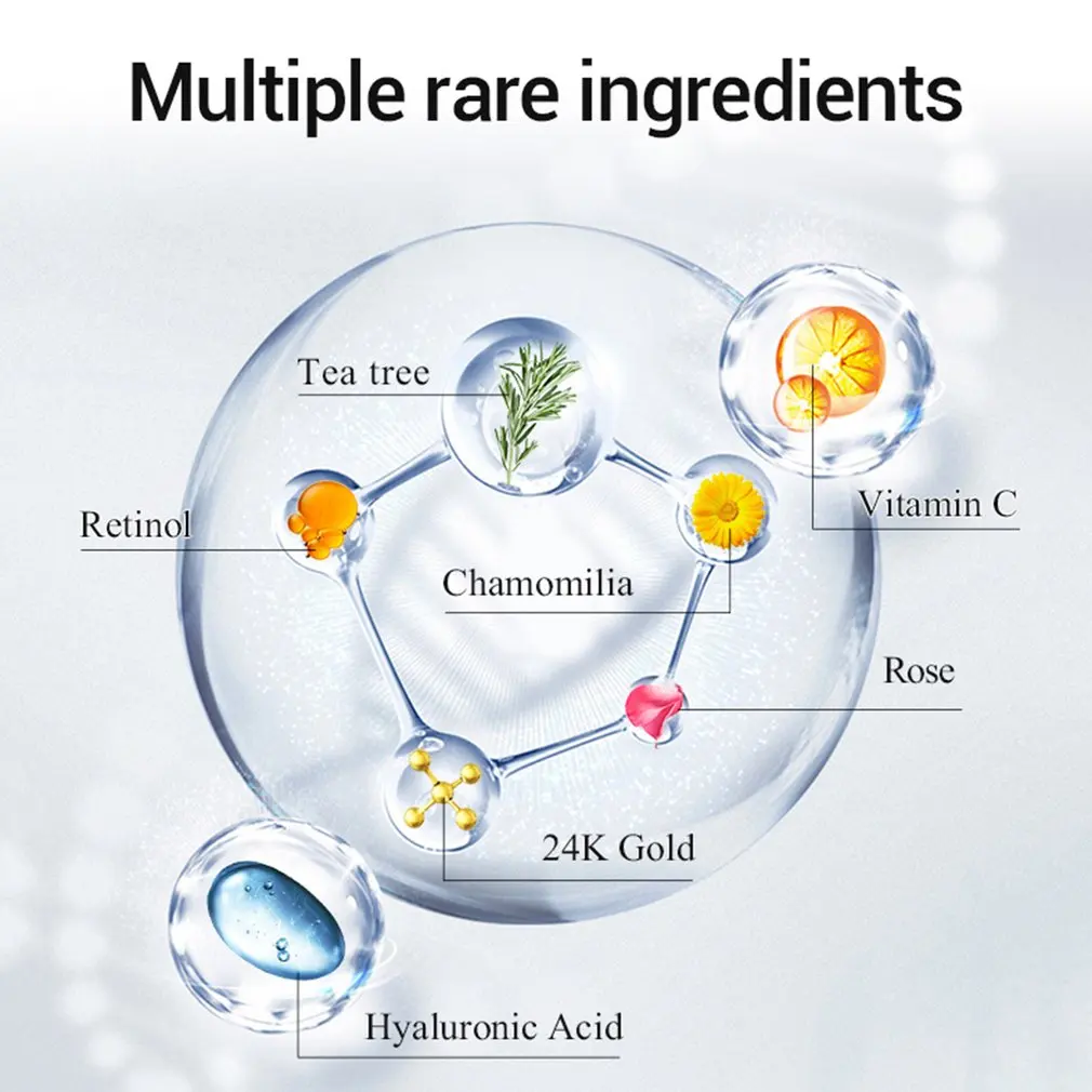 Тип: маска с гиалуроновой кислотой, сывороточная маска ретинола, сывороточная маска витамина С, коллагеновая маска с золотом 24K, розовая сывороточная маска (опционально)