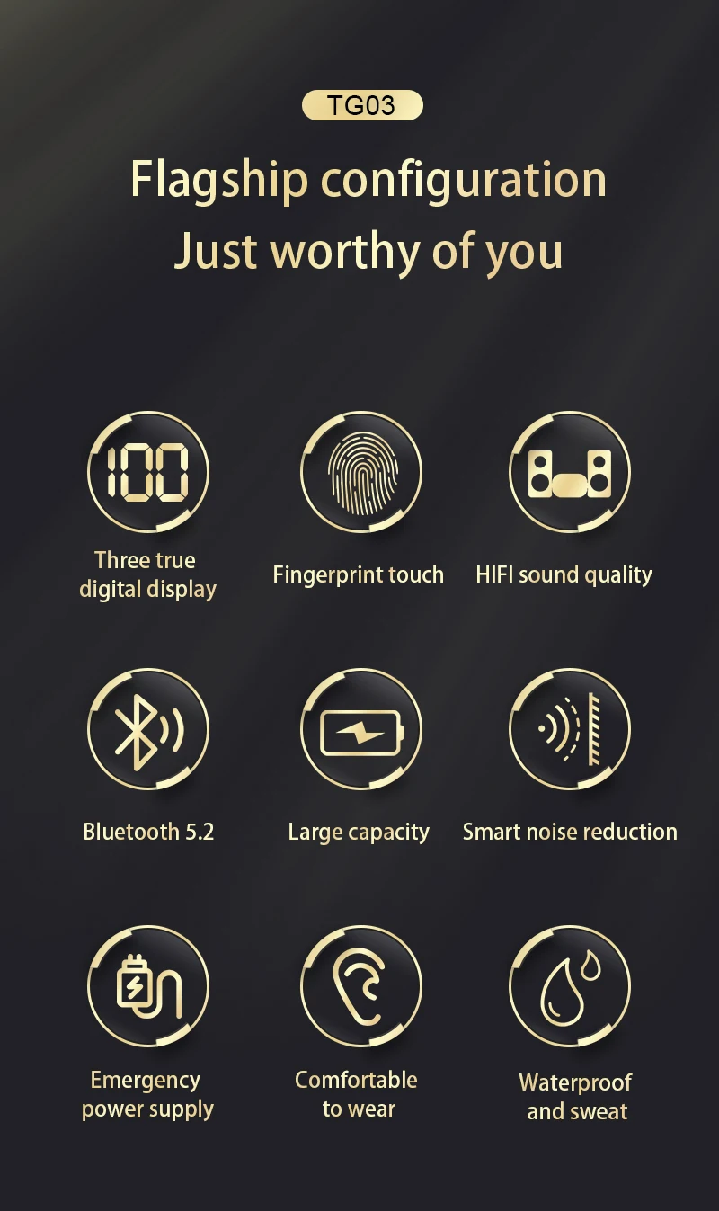 Беспроводные наушники TWS TG03, наушники с быстрой зарядкой, Blueto...
