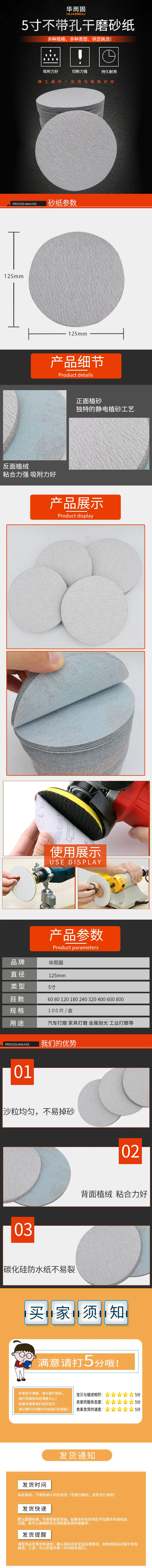 Диск шлифовальный круглый белый, 5 дюймов, 125 мм, 50 шт.