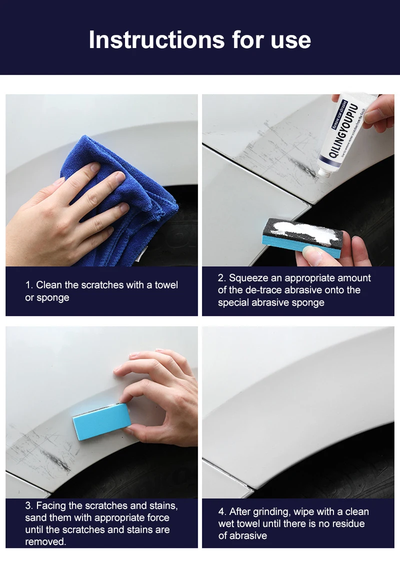 Просто очистите область царапин, удалите грязь, воск, железную ржавчину. Выдавите достаточное количество крема на губку. Используйте губку, протирайте царапины, пока не исчезнут царапины. Затем вытрите крем-воск. Эта технология сэкономит вам много времени и денег и сохранит ваш автомобиль сияющим и чистым.