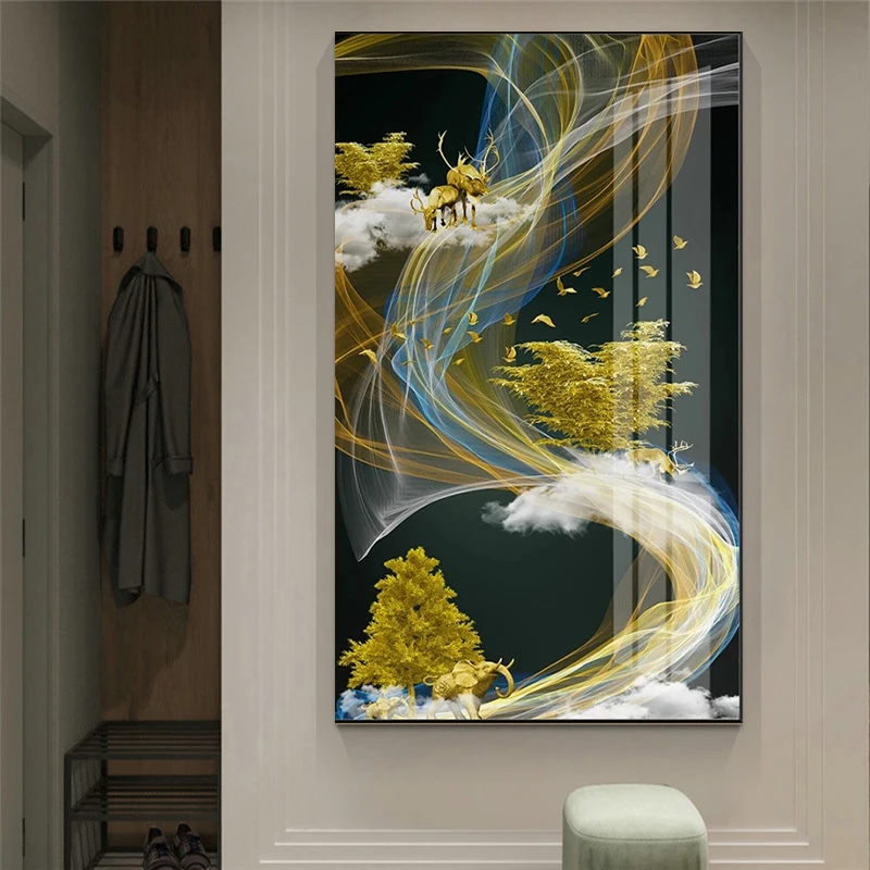 Холст абстрактная золотая линия олень и дерево в фотографиях большой постер печать Золотая стена искусство гостиная