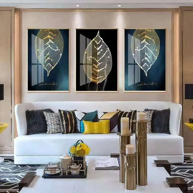 Декор с золотыми листьями для гостиной в скандинавском стиле, роспись для спальни, современная абстрактная картина с изображением растений