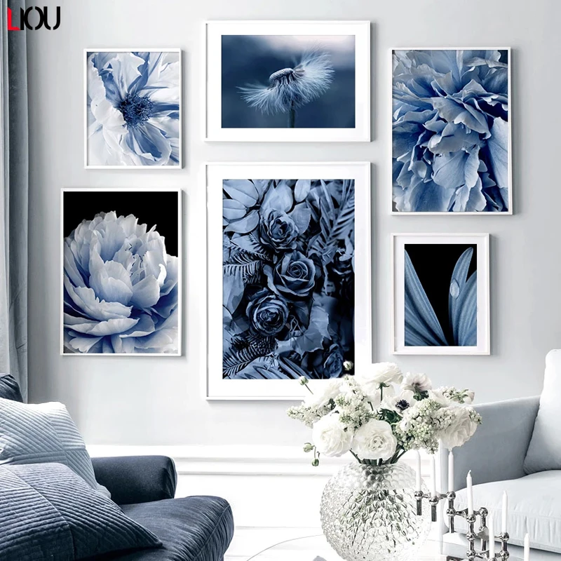 Плакат с синими цветами, настенная Картина на холсте с изображением...