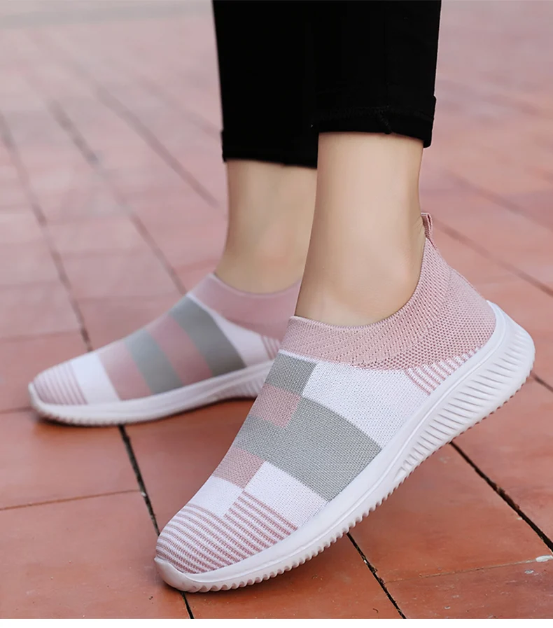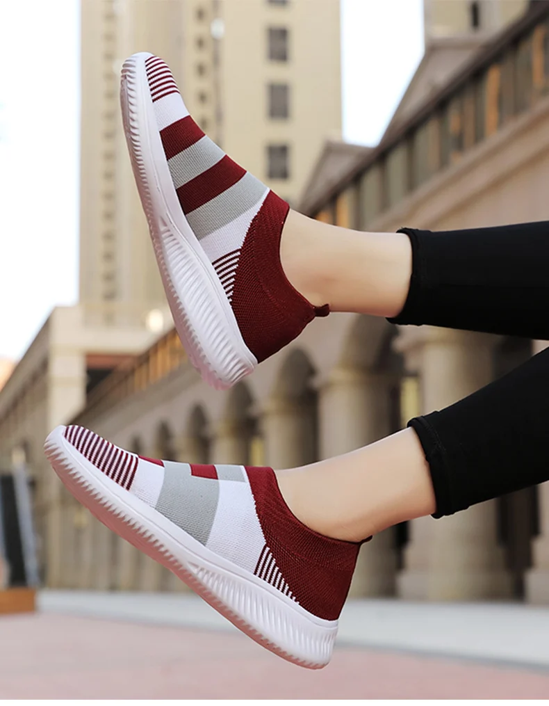 Женские разноцветные вязаные кроссовки на плоской подошве; Женские слипоны на плоской подошве; Женская повседневная обувь; Chaussure Femme; Сезон лето-осень; Большие размеры