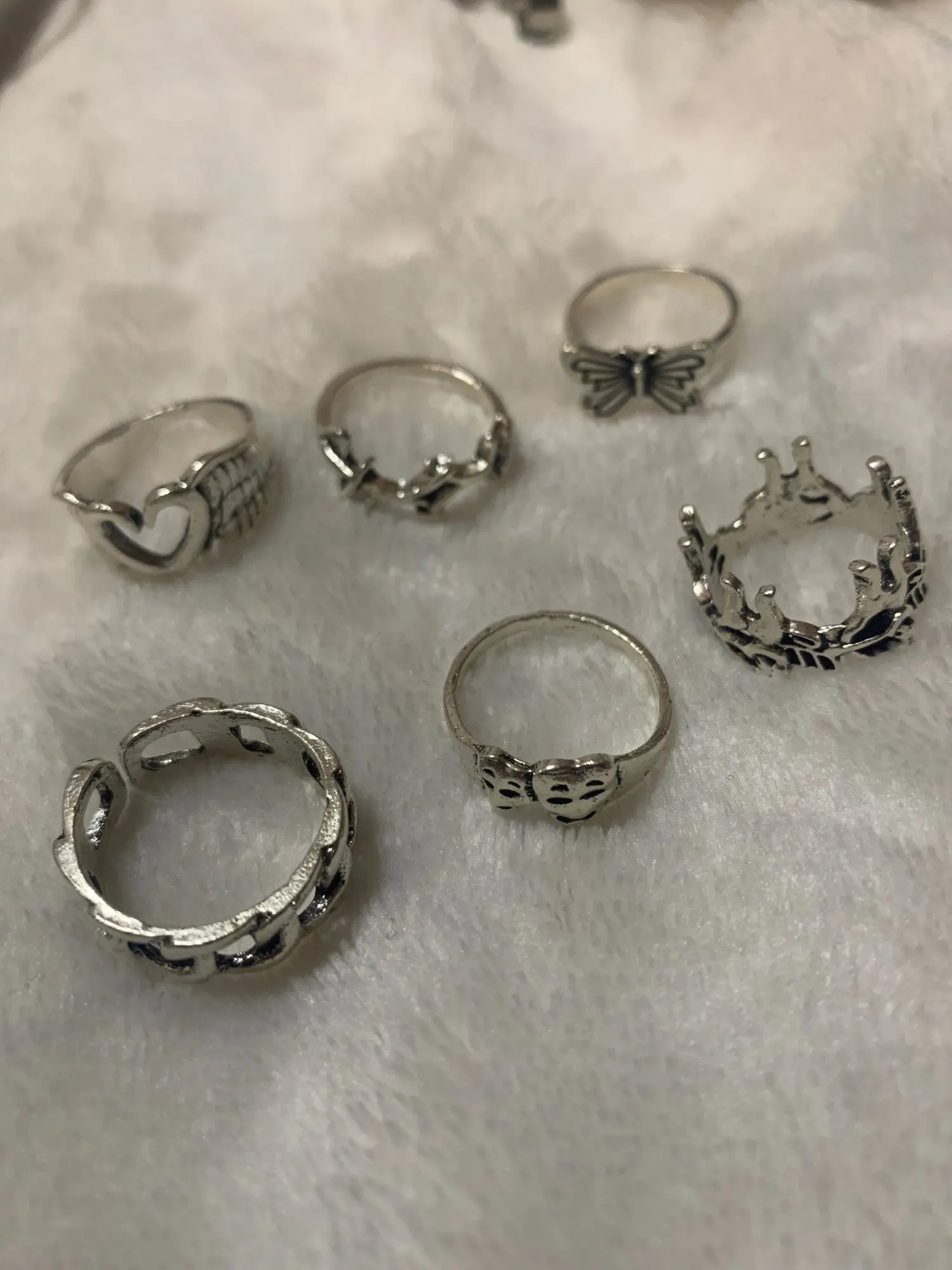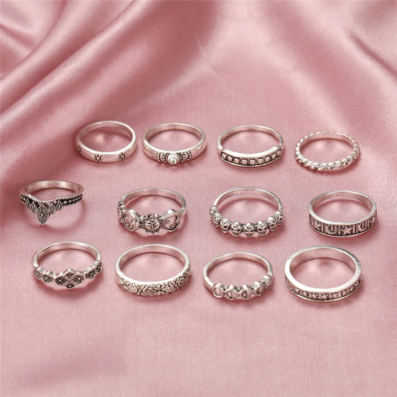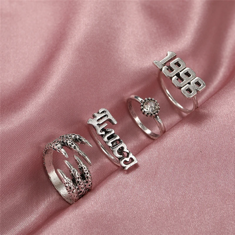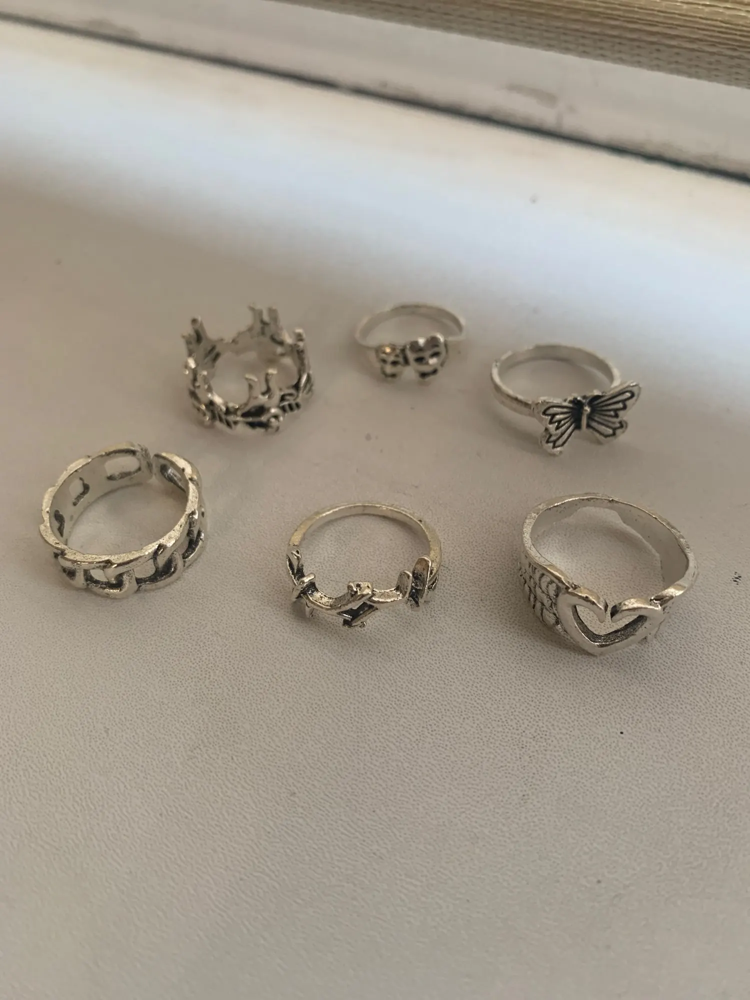 Панк Винтажный серебряный цвет Крылья ангела кольца в форме сердца набор для женщин Готический хип-хоп животное Бабочка череп кольцо ювелирные изделия для вечеринок