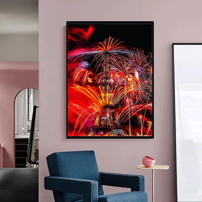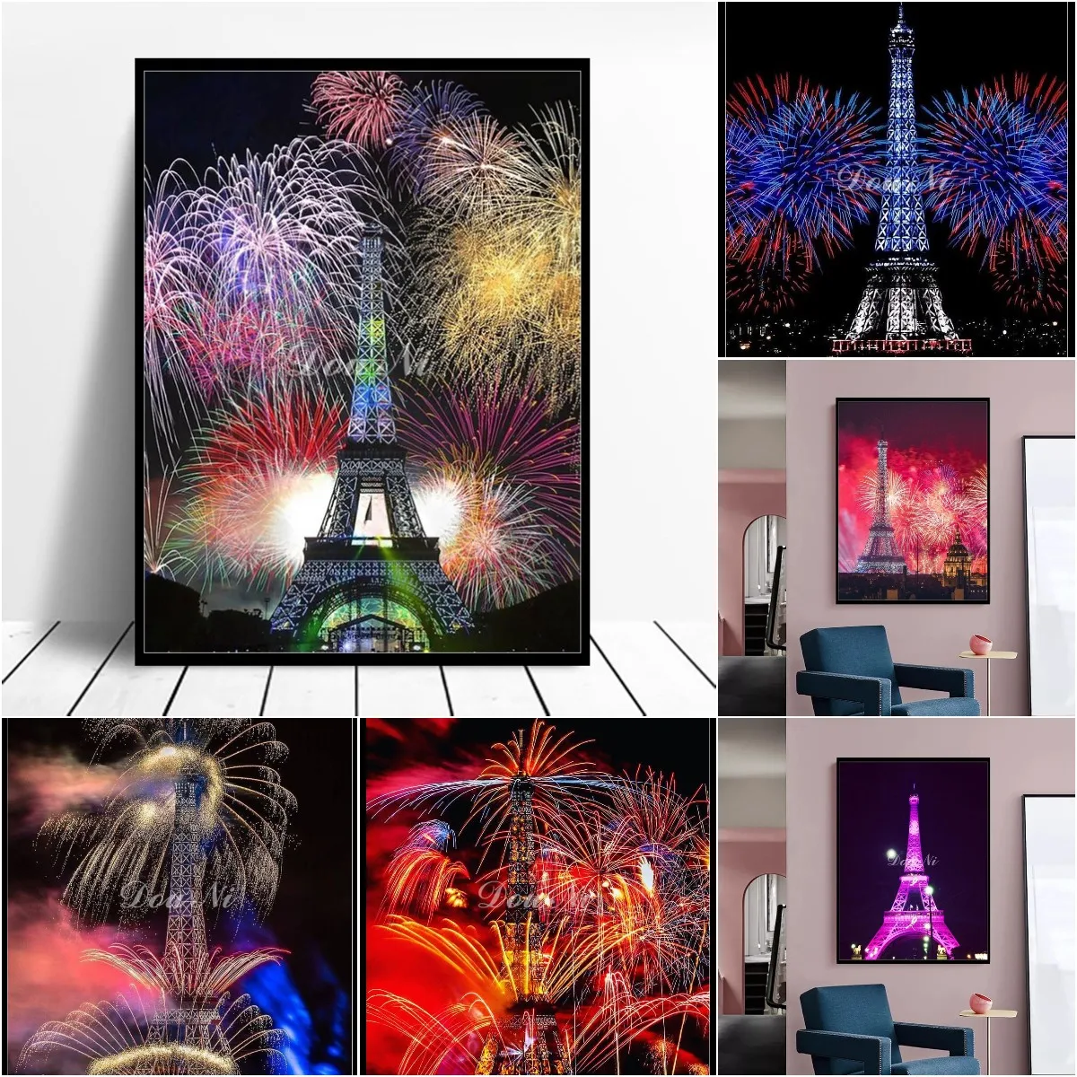 Алмазная живопись, украшение интерьера, Эйфелева башня, фейерверк, Ночной пейзаж, картина стразы, наборы для вышивки крестиком, домашний декор, искусство
