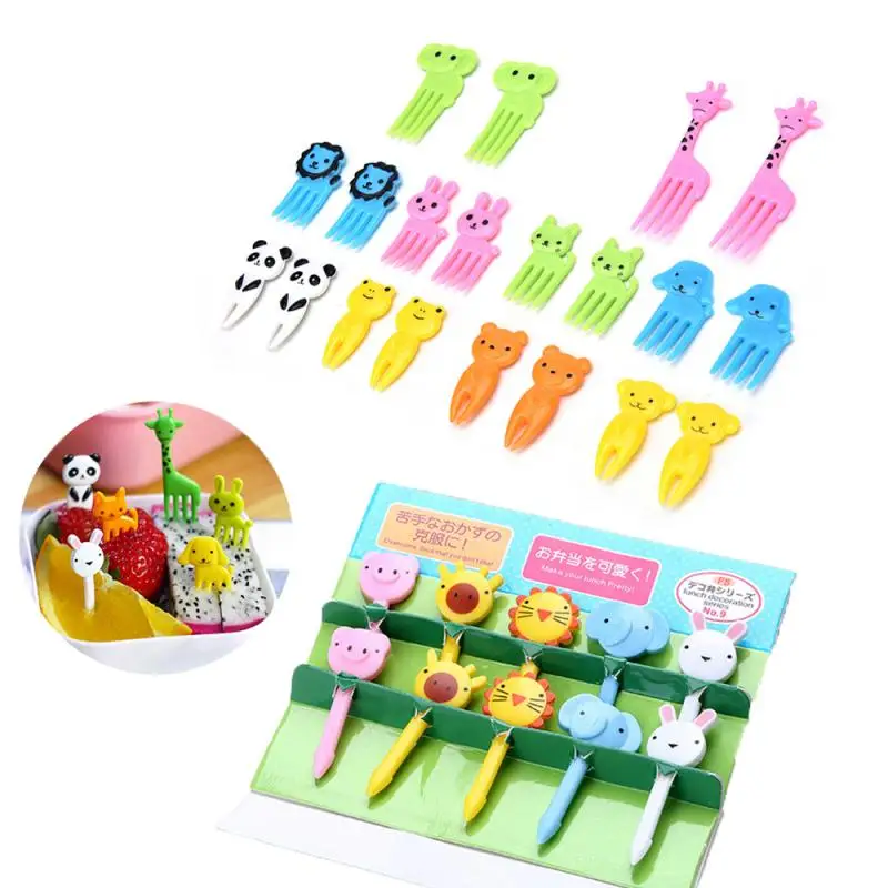 Мини-вилка для фруктов с мультяшными животными, Детская закуска пирог десерт пищевая зубочистка для фруктов, украшение для вечевечерние