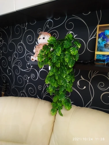 Веточка тоненькая,надо брать 4 или 5,что бы получилось,как на картинке.Листики держатся плохо,но выглядит более менее натурально.Запах стоит не очень,но надеюсь выветрится.