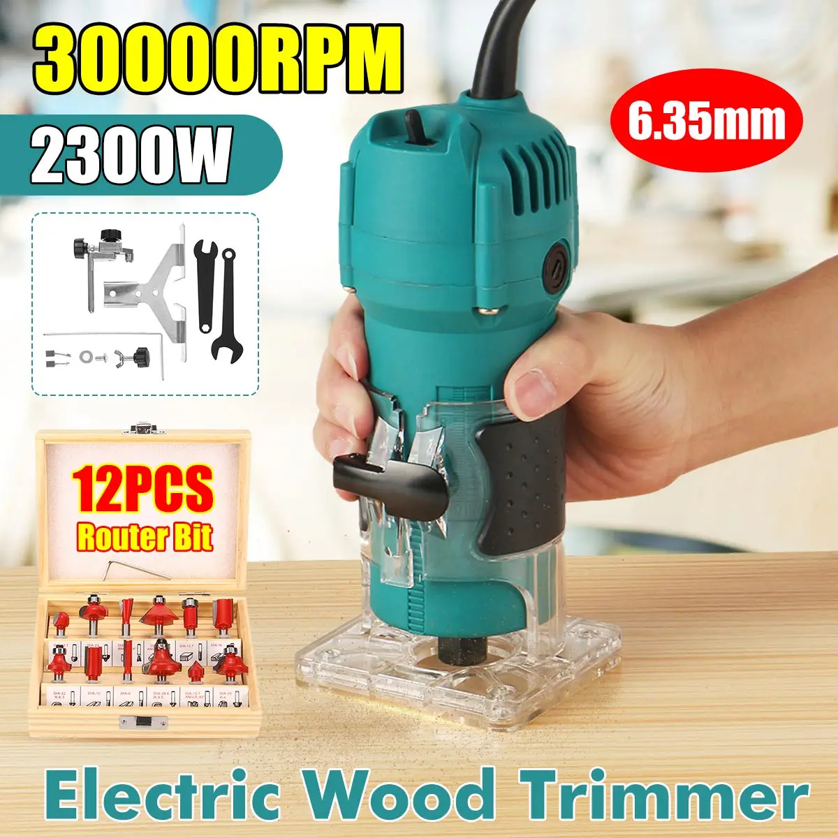 2300 Вт, 30000 обмин, деревянная электрическая ручная фреза, гравировка, обрезка, ручная фреза, набор столярных соединений