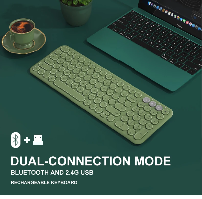 * Подходит для использования с системами Android, Windows и iOS, планшетами, смартфонами и т. Д.* Достаточно памяти для трех отдельных устройств Bluetooth.* 2,4 ГГц или bluetooth двухрежимное беспроводное соединение с устройствами bluetooth.* Легкий, тихий ход клавиш.* Энергосберегающий режим сна.* Питание от аккумулятора 280 мАч* Изготовлен из экологически чистого АБС-пластика, фортепиано лаковый материал поверхности, ПК клавиатура дно с резиновыми противоскользящими ковриками.* Совместимость с ios,windows (Windows 98/ 2000/ XP/ Vista/ WIN7/ WIN8/ Win10)