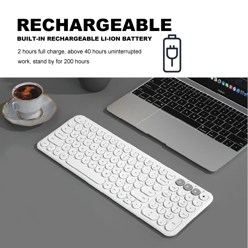 KuWFi 2,4 ГГц и Bluetooth клавиатура, модная беспроводная клавиатура с несколькими устройствамиЗарядка 2 часа, работа длится 200 часов