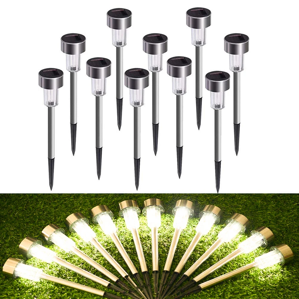 10 шт., светодиодные лампы на солнечной батарее, из нержавеющей стали