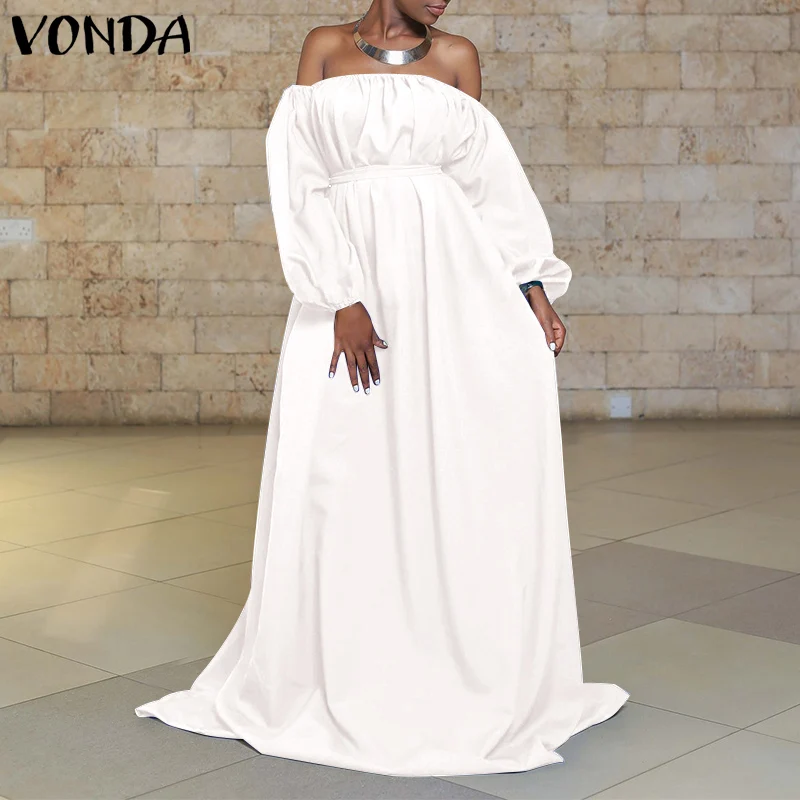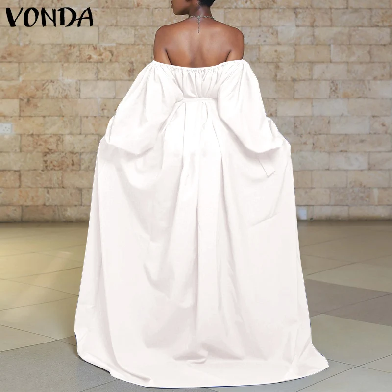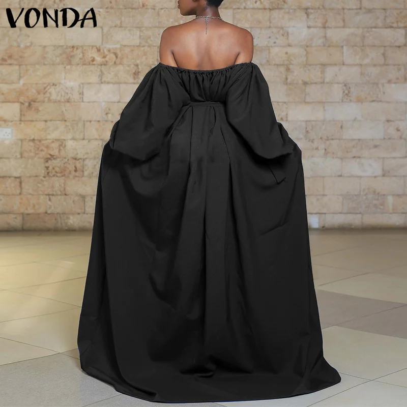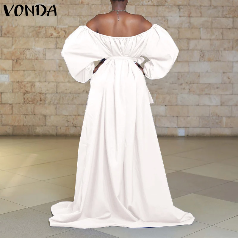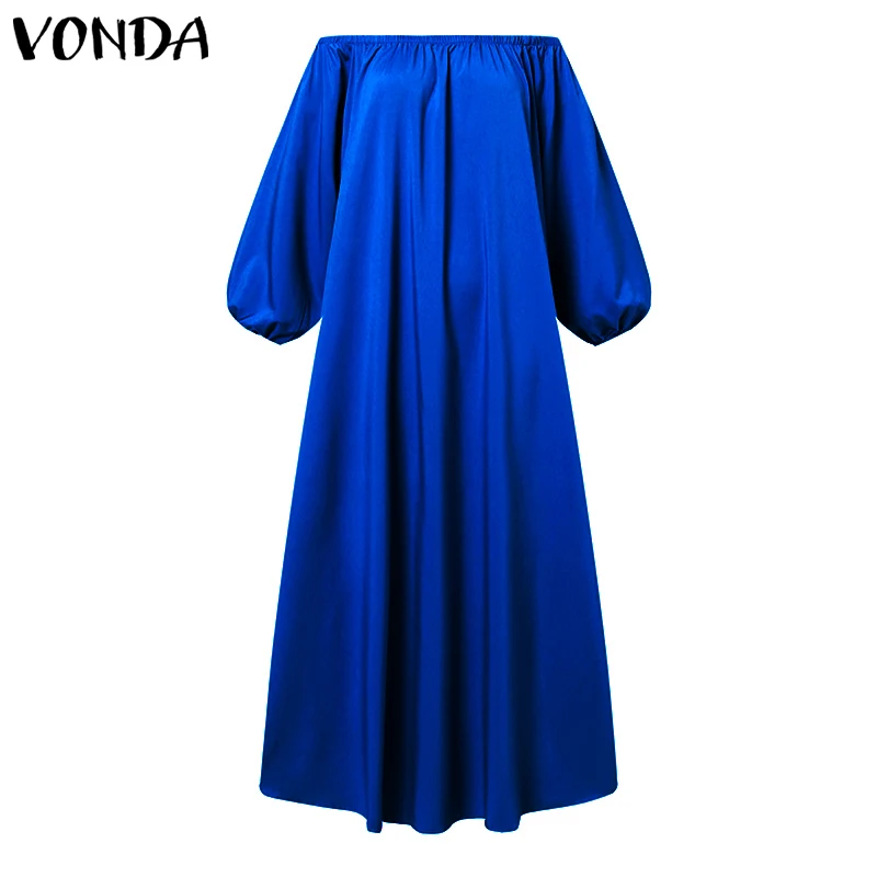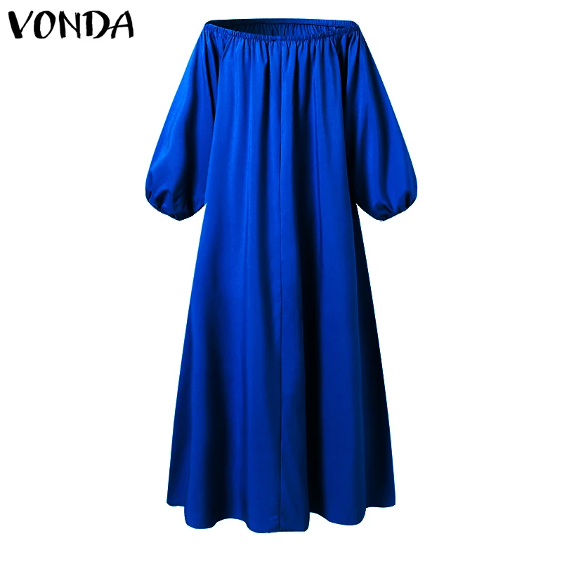 Платье-Макси женское с открытыми плечами и рукавами-фонариками, однотонное