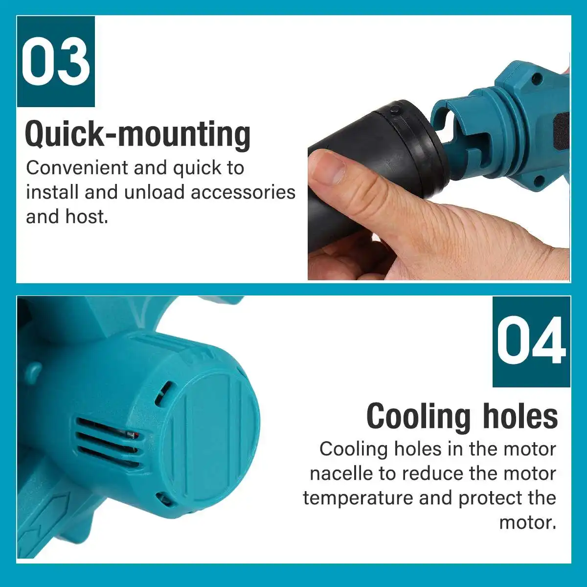 Особенности:-Светодиодный дисплей батареи, легко понять оставшуюся емкость аккумулятора и контролировать нагрузку.-Мощный мощный двигатель, медный сердечник, большая мощность, более длительный срок службы.-Быстрая установка, удобная и быстрая установка и разгрузка аксессуаров и хоста.-Защитная крышка предотвращает попадание мусора в вентилятор.-Нескользящая прорезиненная ручка, стабильная и удобная ручка, не болят руки при работе в течение длительного времени.-Бесступенчатое Управление скоростью, скорость ветра может регулироваться при нажатии силы, мощность может быть выходной по требованию, распределение электрической энергии является более разумным.-Охлаждающие отверстия в двигателе nacelle для снижения температуры двигателя и защиты двигателя.-Крыльчатка типа Vorteex, повышающая давление ветра, двухциклонная ветровая группа, более мощный ветер.-Выдувное всасывание двойного назначения, большая долговечность батареи, домашнее удаление/очистка пыли, промышленное удаление пыли, одна машина.