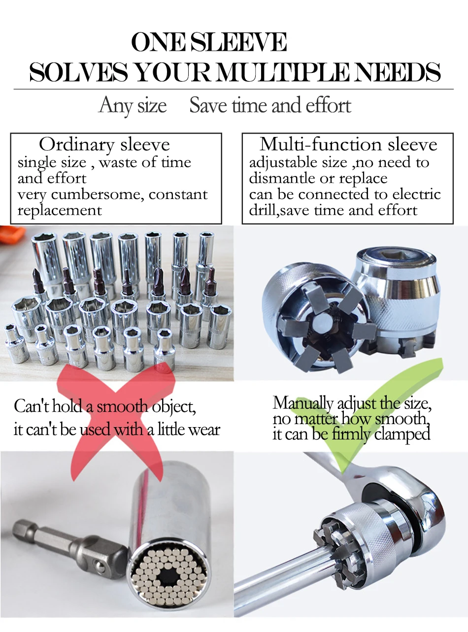 -Легко захватывает и удаляет поврежденные, закругленные и ржавые гайки и болты.-Поддерживает равную силу со всех сторон застежки, противоположные закругленным углам.-Он легко справляется с высокими крутящими моментами, крепко и правильно захватывает любые гайки и болты в пределах диапазона размеров с постоянной регулировкой.