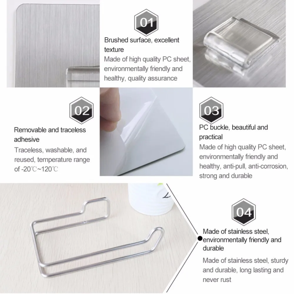 Многоразовый моющийся многоразовый держатель без штамповки из нержавеющей стали без остатка клея