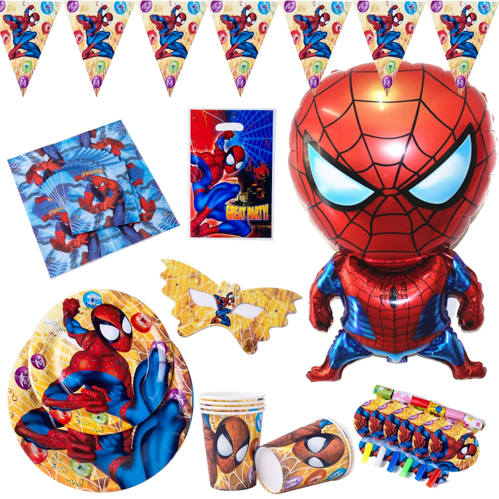 Superhero на тему Человека-паука украшения для дня рождения, набор одноразовой столовой посуды, бумажная Бриллиантовая скатерть
