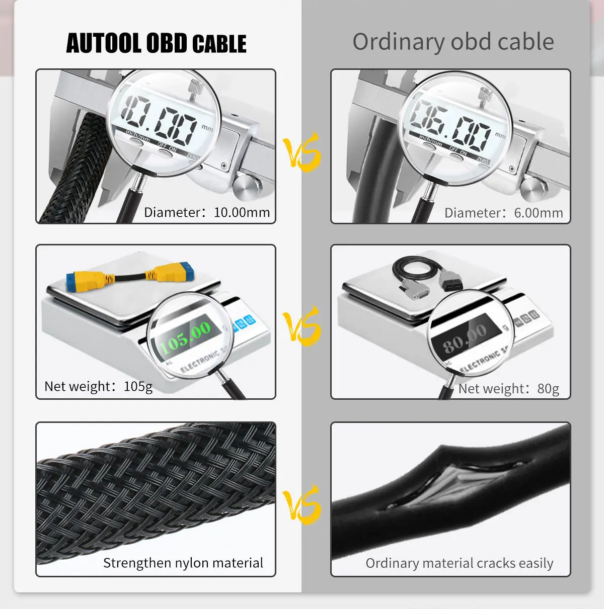 Автомобильный удлинитель AUTOOL 20 см с поддержкой OBD2, усиленный нейлоновый удлинитель, кабель штырь-гнездо