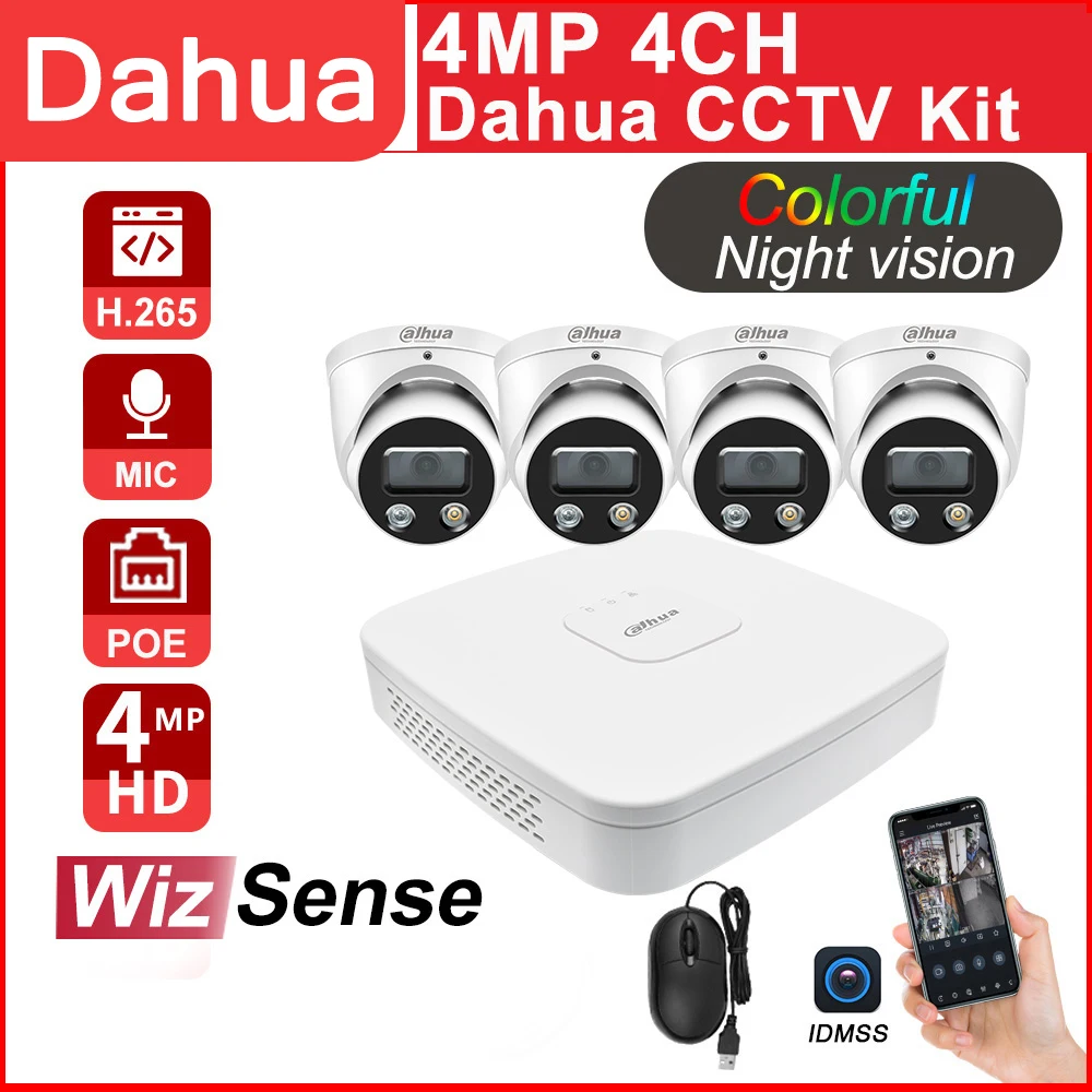 Dahua CCTV kit NVR 4CH 4K NVR2104-P-I 4MP IPC-HDW3449H-PV-AS WizSense сетевой видеорегистратор Система дистанционного наблюдения