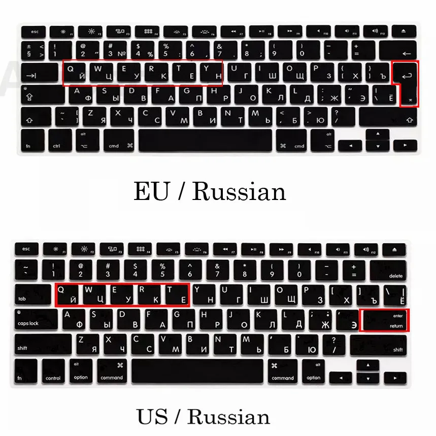 Мягкая накладка на клавиатуру для Macbook Pro 13, 15, Retina 13, 15, Air 13, EU, US, русская Силиконовая накладка на клавиатуру A1466, A1278, A1286