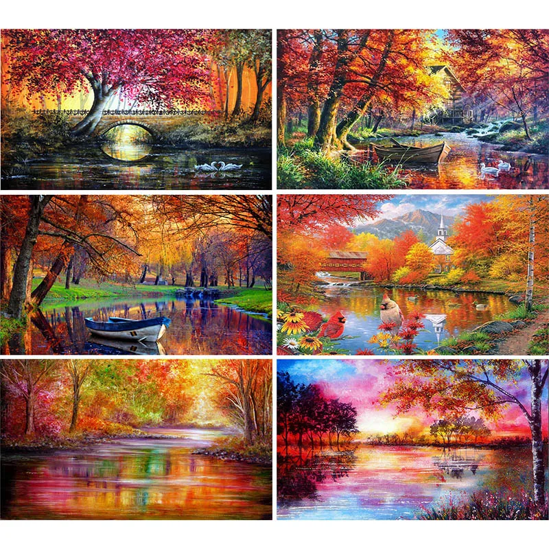 Алмазная живопись с пейзажем, Набор для вышивки крестиком 5D сделай...