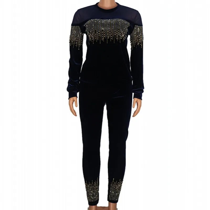Африканская Бархатная одежда, женские комплекты из 2 предметов, топы и брюки с высокой талией, модные новые повседневные африканские Велюровые Костюмы со стразами