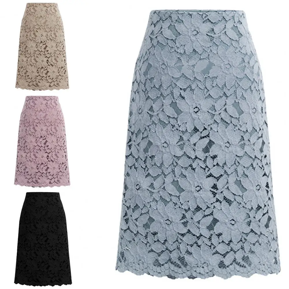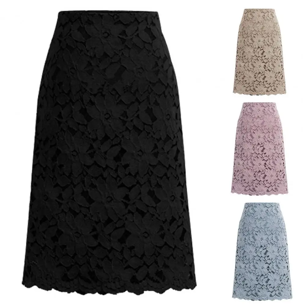 Юбка-трапеция до колена, с завышенной талией, однотонная