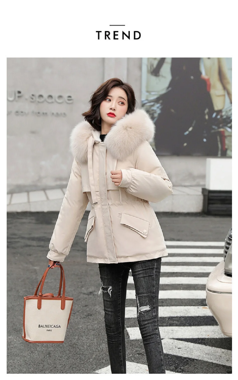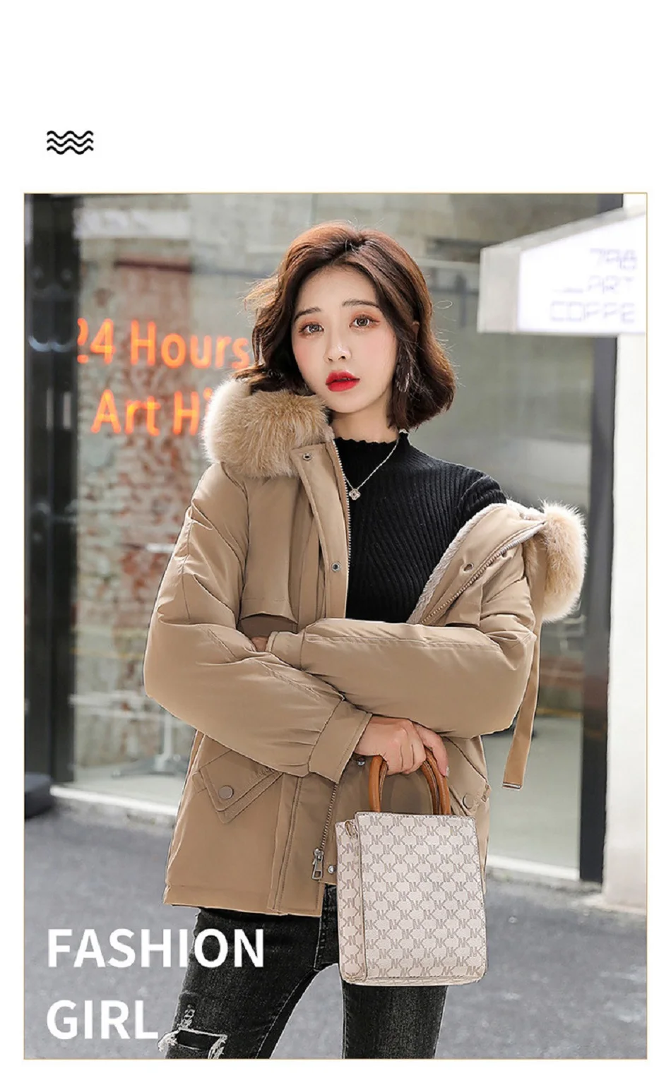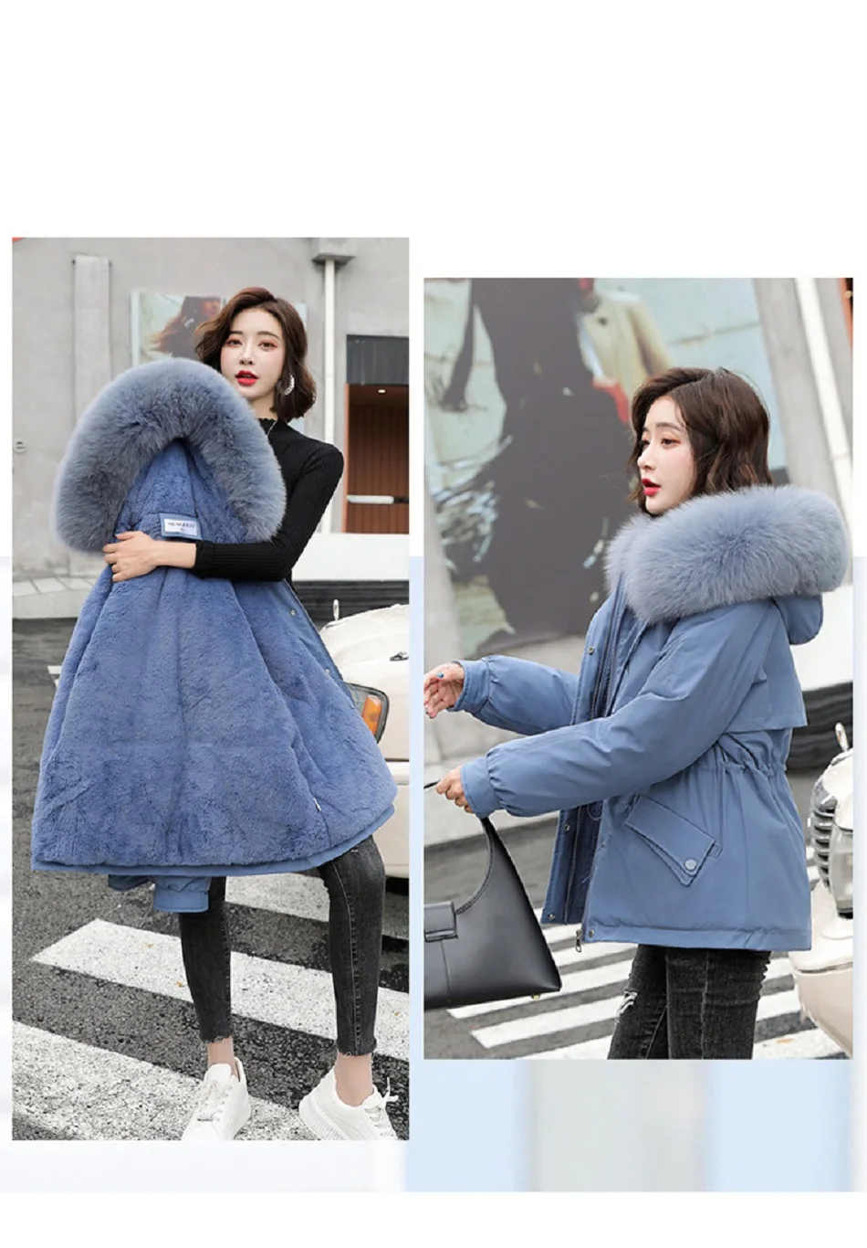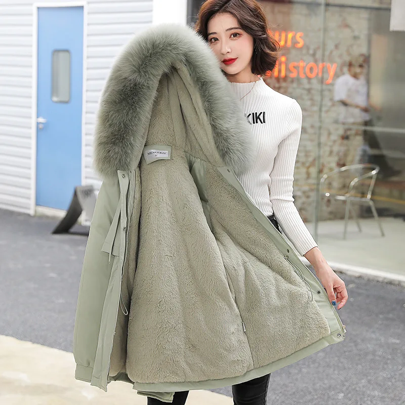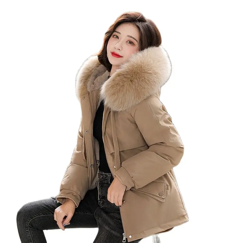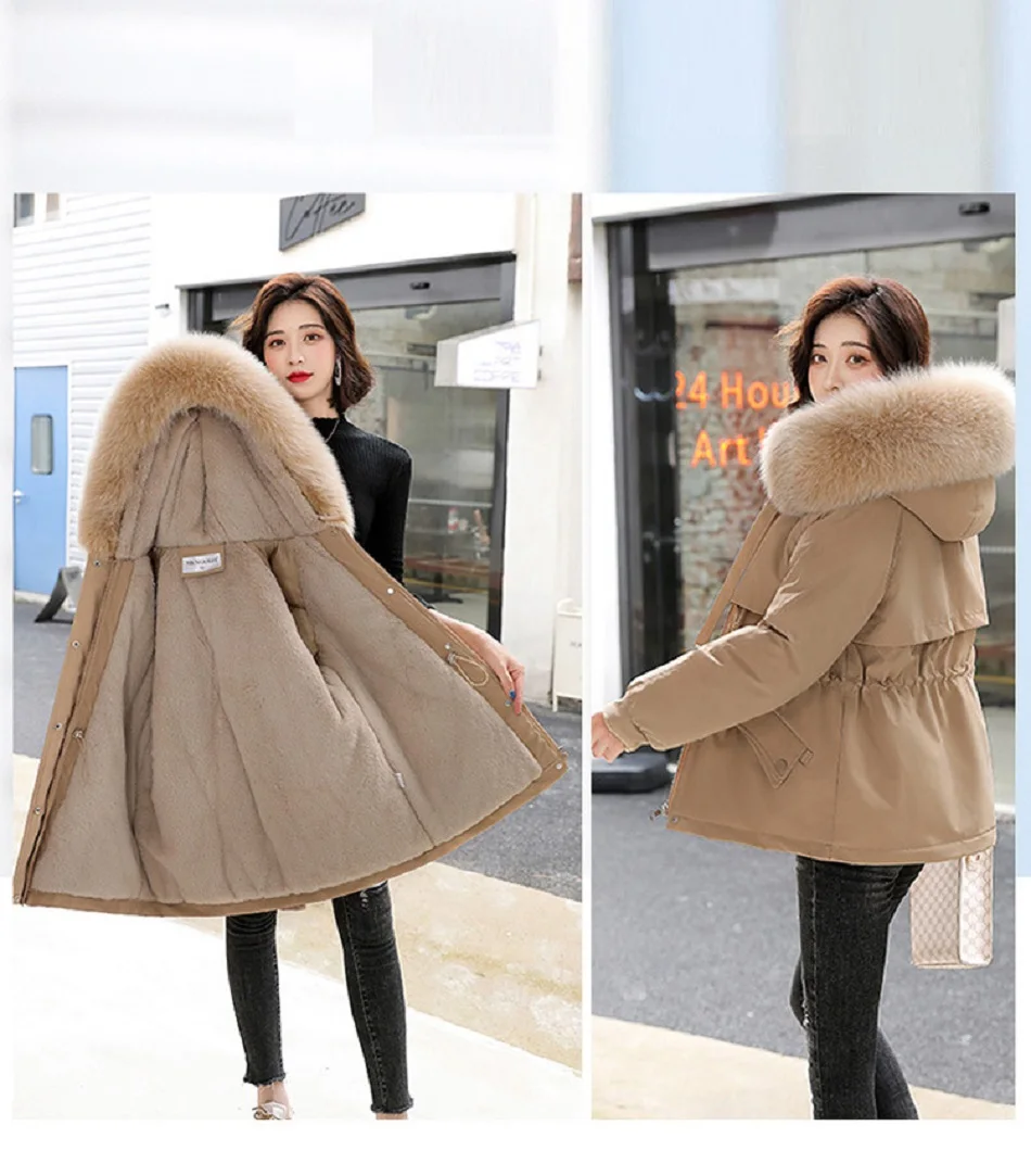 Зимние женские пальто, новинка 2021, Женская куртка средней длины с большим меховым воротником, корейская мода, приталенная плюшевая внутренняя часть, хлопковая куртка Паркер