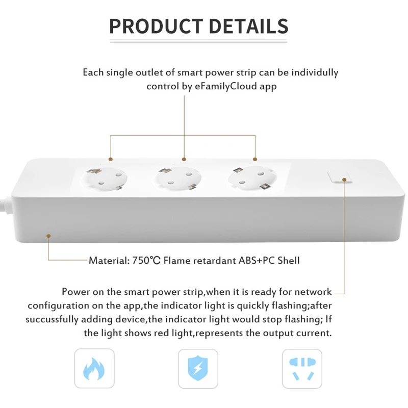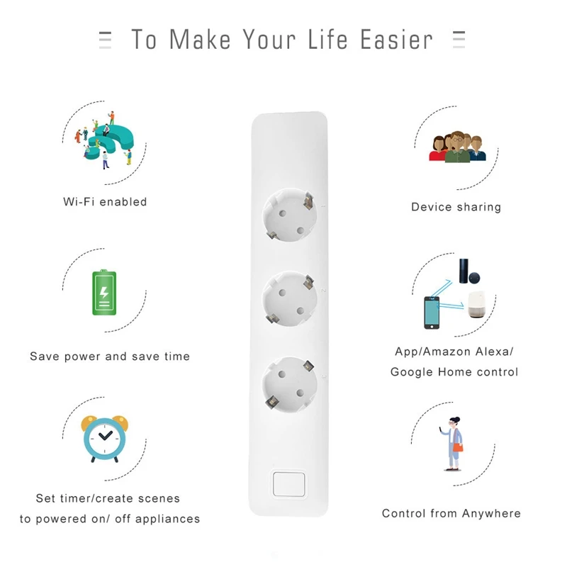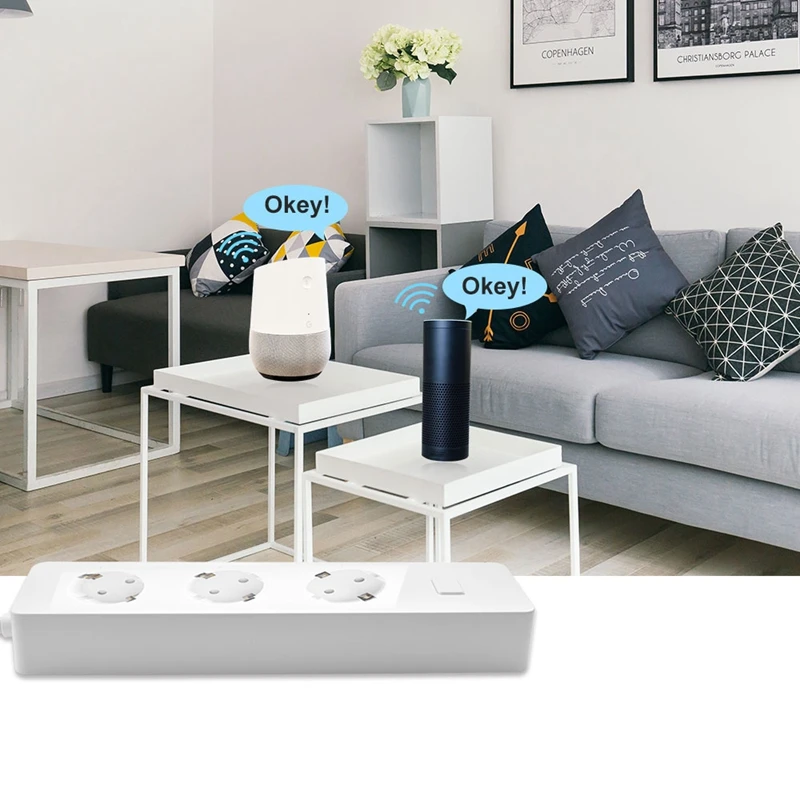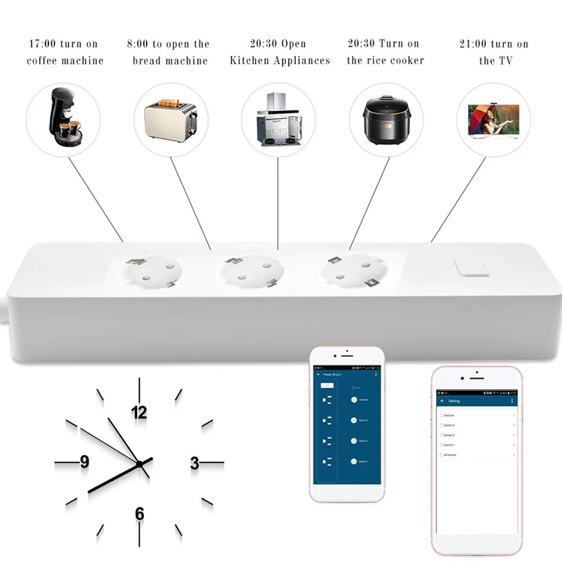 Домашний удлинитель, Wi-Fi Мобильный телефон переключатель, таймерный удлинитель, 2 USB-порта3 розетки, голосовое управление, штепсельная вилка европейского стандарта
