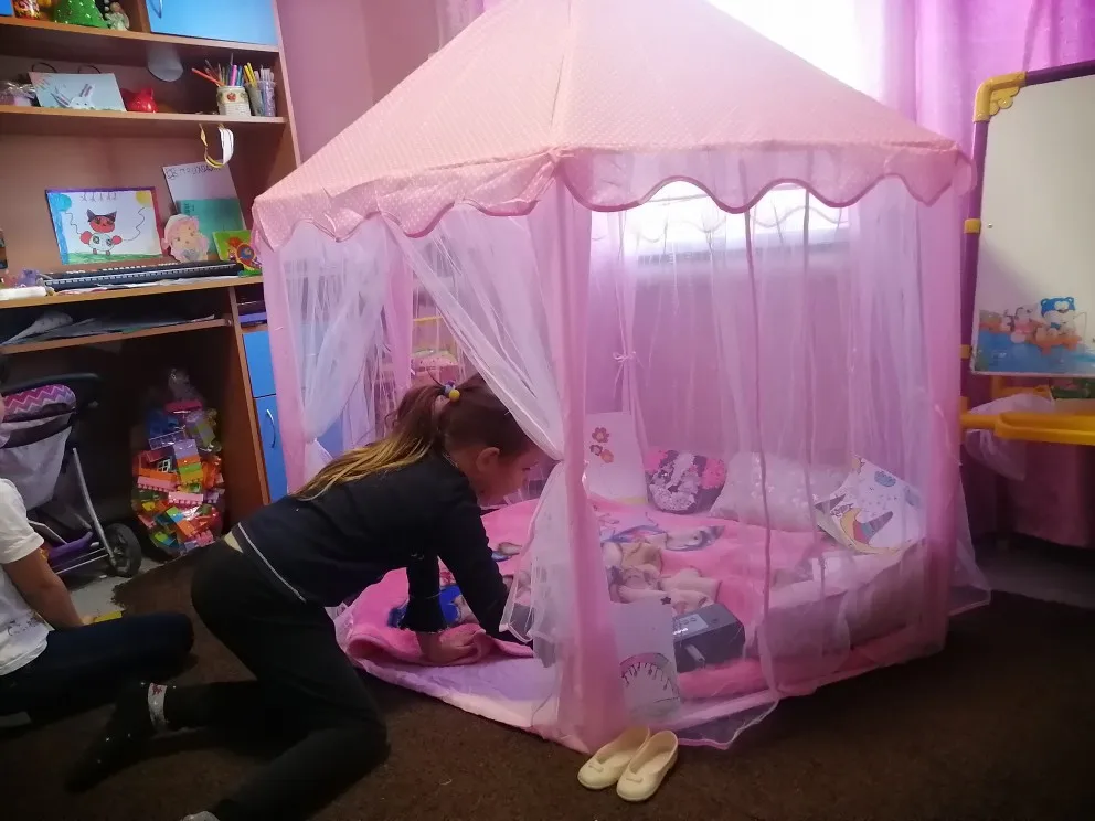 Заказала палатку 25.09, пришла 30.09. Палатка пришла в целости. Запчасти все на месте, единственное схема немного некорректна, но все исправимо. Игравая палатка покупалась в подарок ребенку на 2 годика. Ребенок доволен, взрослые тоже.