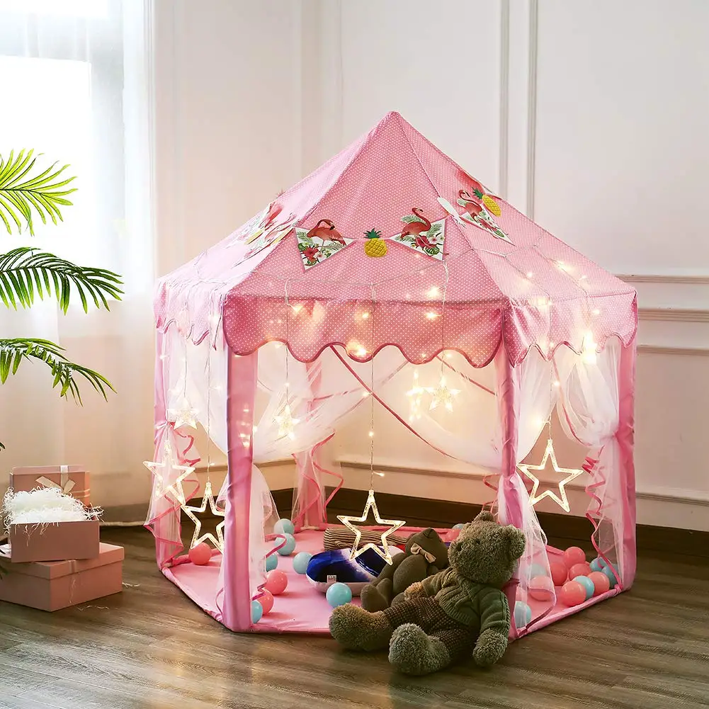 Hexagonal Princess Castle GirlTipi Princess Castle Folding Cubby Toys Tents