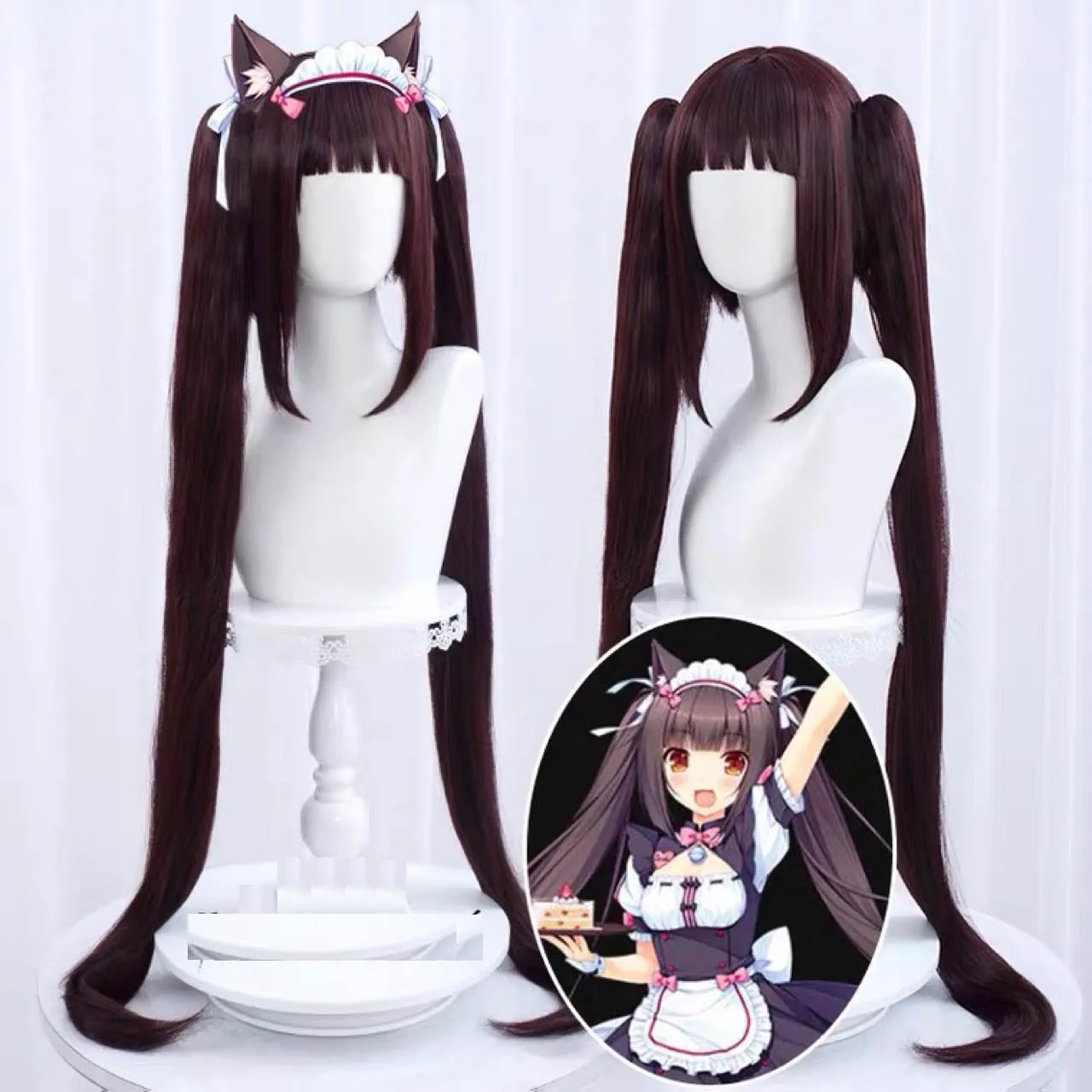 Термостойкий парик для косплея из аниме некопара шоколадная чокола, 100 см