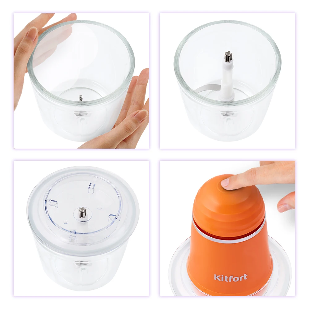 Измельчитель Kitfort KT-3016-4 быстро измельчает мясо, твердый сыр, овощи, травы, чеснок и ягоды. Устройство очень компактное, не занимает много места. Емкость чаши всего 500 мл. Чаша измельчителя изготовлена из экологически чистого материала-стекла, его можно закрыть крышкой и использовать для хранения продуктов. Для обеспечения безопасности kt-3016 может работать только с установленным двигателем. Устройство управляется нажатием только кнопки питания на блоке двигателя. Измельчитель очень легко и быстро стирается.