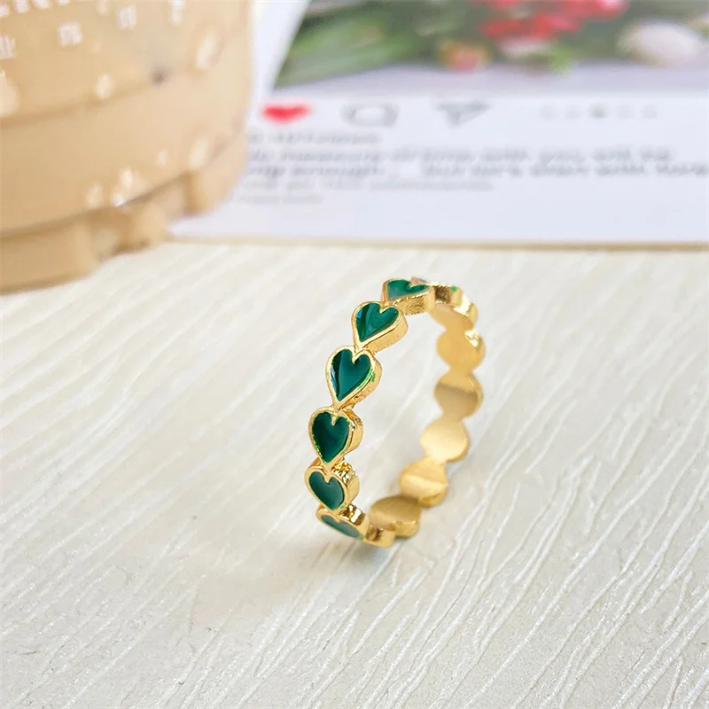 Женское Открытое кольцо с эмалью, кольцо в форме сердца зеленого цв...