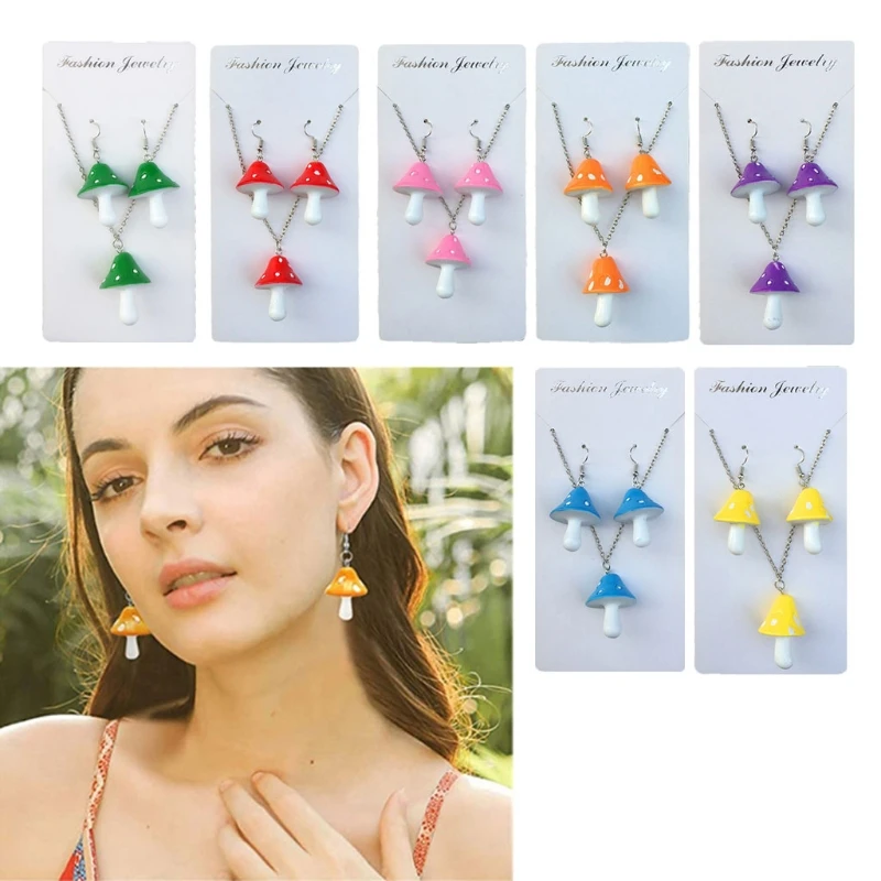 Красочные Висячие серьги с грибами, ожерелье, набор, ручная работа, грибы, ожерелья, радужные цветные овощи, ювелирные изделия, A5KE